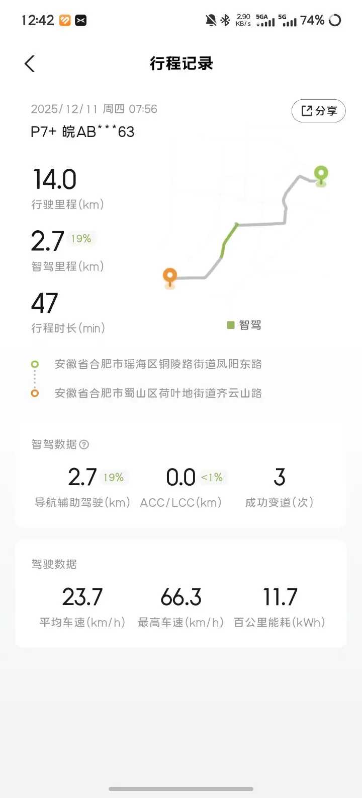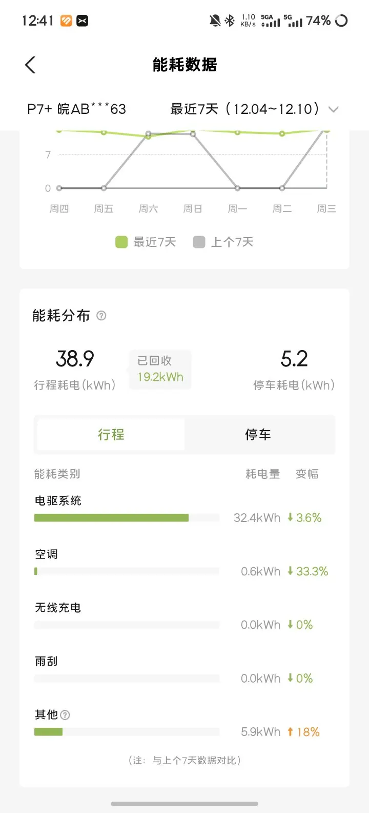 上下班15公里,电耗平均在10~13之间,叠加我充的小鹏S5充电桩的午间电,5毛9一度,每公里大概不到8毛。高速的话,跑到120能耗会高点,但是能接受。总体来说,开起来的电耗对我来说是免费的,毕竟还有9万积分用于充电,够我跑10万公里了✌🏻✌🏻✌🏻。
