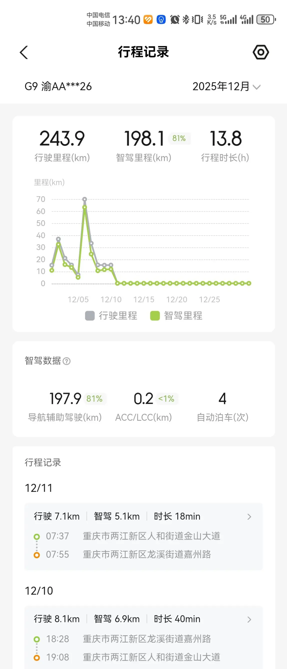 智驾里程月均超7成(12月还没完,到最后肯定也是超7成),因为小鹏的辅助驾驶,确实好用、放心