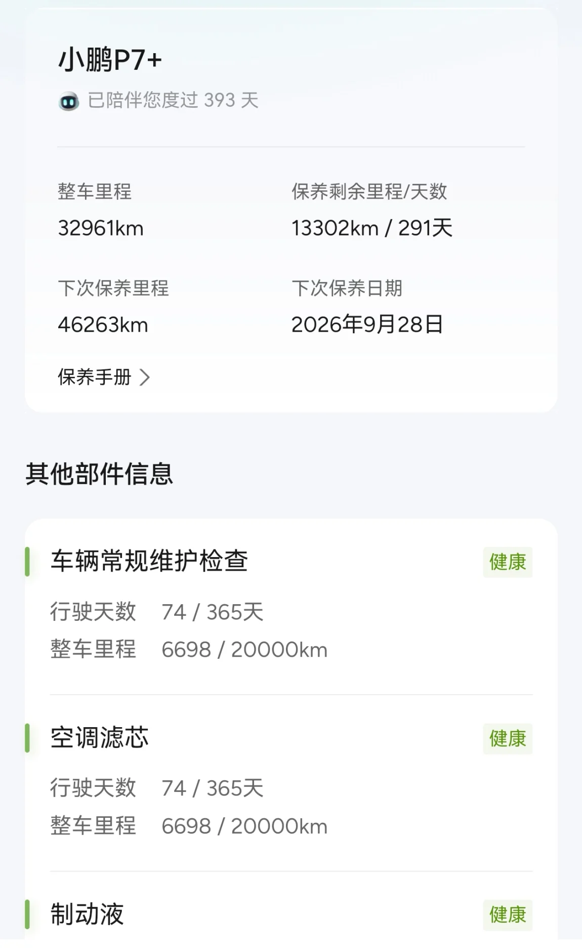 2025年总共行驶超过3万公里了,1月份5700公里做的首保,到9月份26263公里做了二保,两次检查车辆使用状况都很健康,除了🛞轮胎磨损有点快以外还没有其他问题出现。最重要的是方向机问题鹏厂也是处理的很果断,9月份就通知我去售后换上了新的转向机,让我用车再无后顾之忧。车辆系统经过今年数次OTA升级功能上越来越方便,实际使用起来也更丝滑。