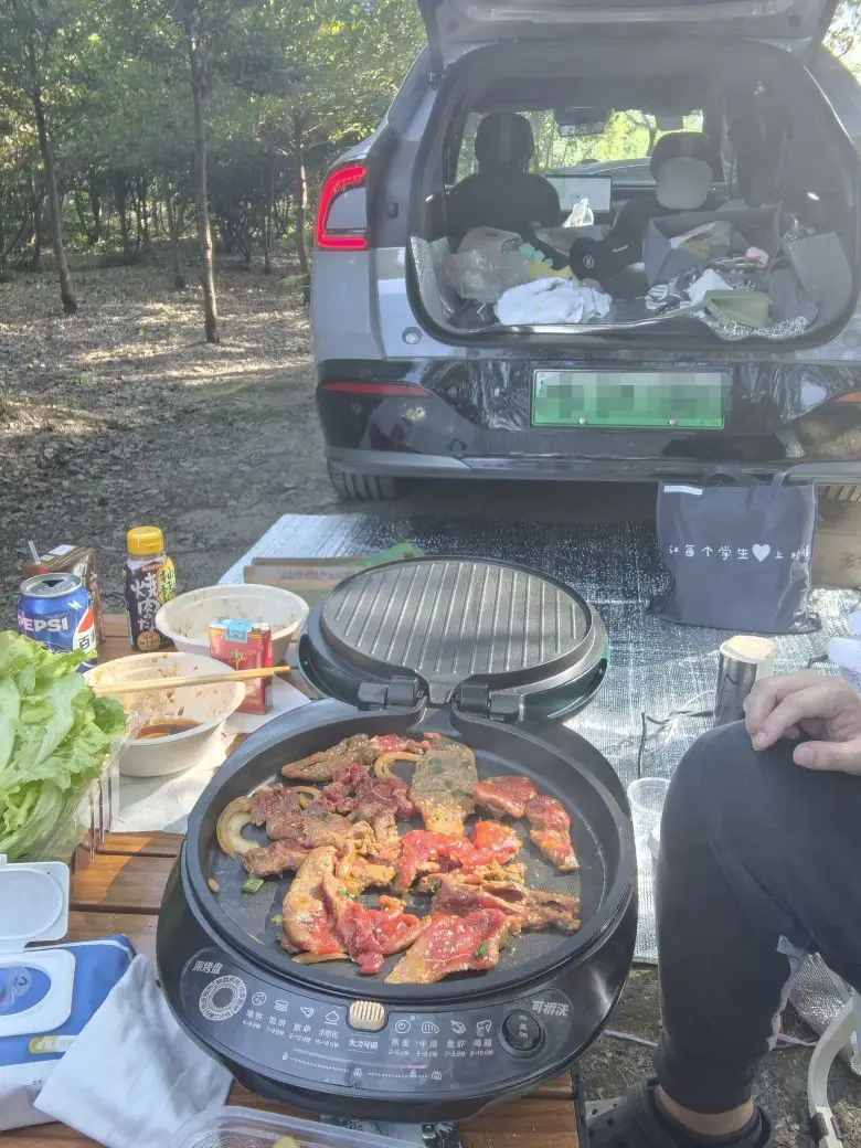 开着电车去露营真是非常棒的体验。一根拖线板一接。所有电器都能插上。给露营带来了无限的可能。