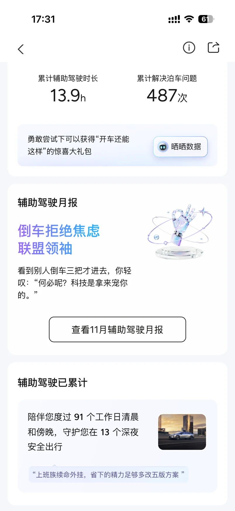 谁懂小鹏泊车功能的好啊!今年开着小鹏跑了不少城市,遇到过各种奇葩车位,原本以为要反复调整,结果它能自动识别车位还实时预警障碍物,全程丝滑搞定,彻底告别停车焦虑,这功能必须是我年度最爱~