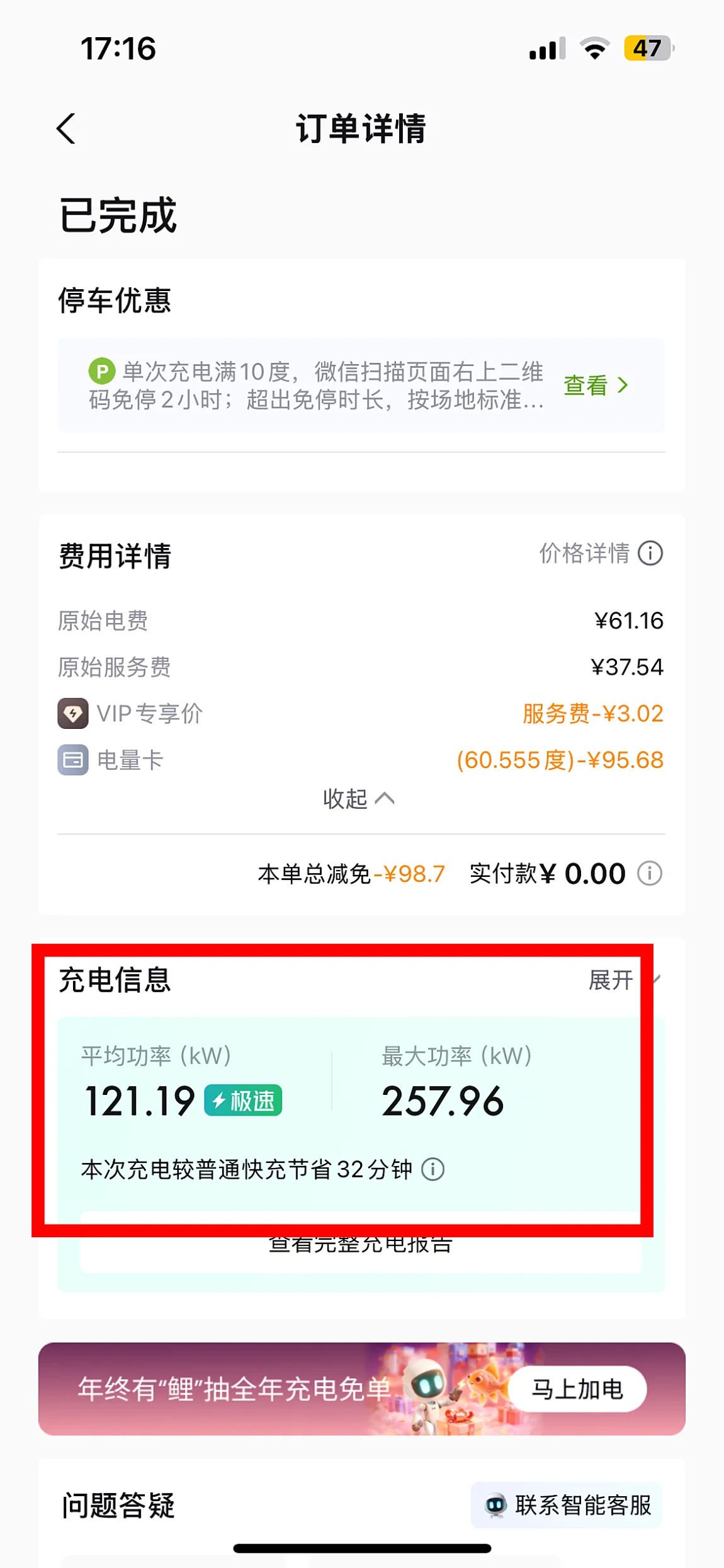 👆特来电与小鹏充电站对比,小鹏功率更高且有进度状态显示,特来电无进度状态显示