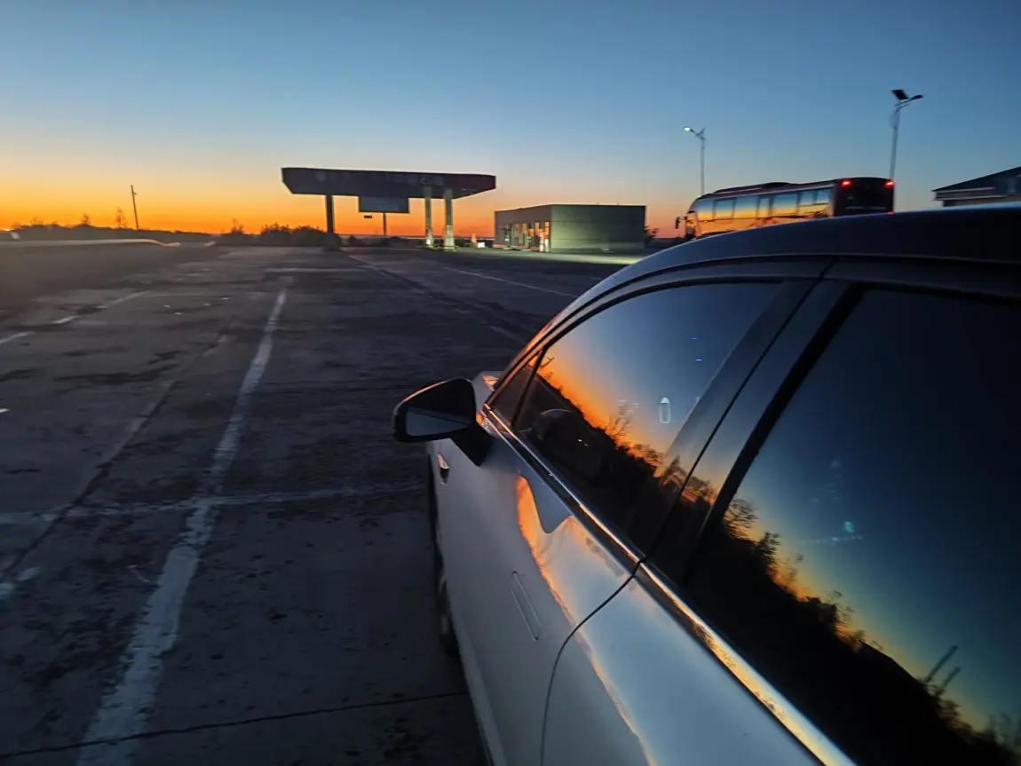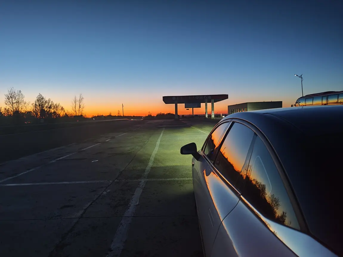 在服务区看完一场日落 夕阳晚霞渐渐到蓝调时刻