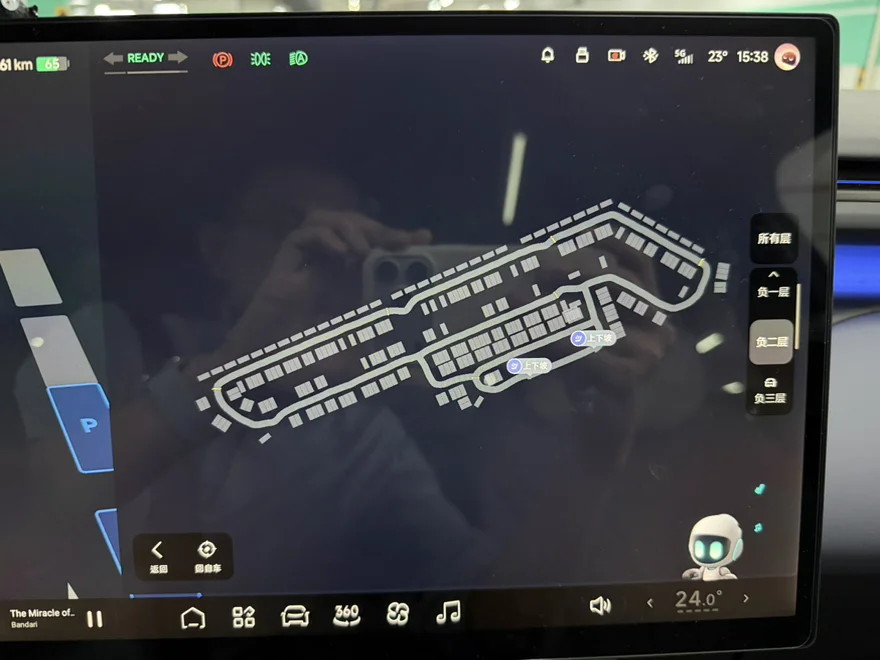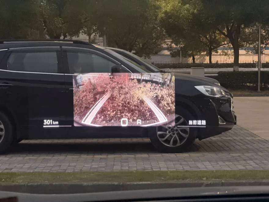 另一个好用的功能就是AR HUD上的倒车影像了,不用歪头盯着屏幕了。不过有个小建议,现在屏幕上如果选轮毂视角HUD上就不显示了,希望可以互不影响,这样相当于多了一块屏幕显示不同的视角。