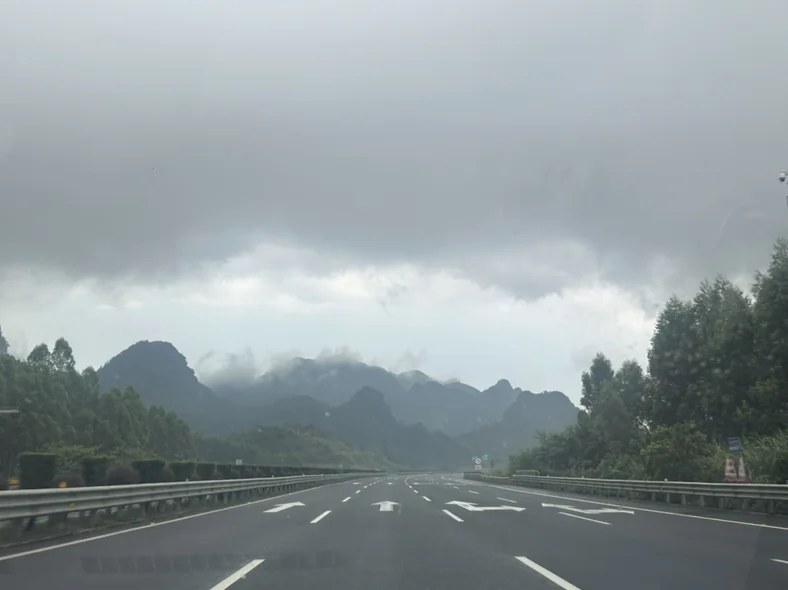 车驶出城市,喀斯特地貌在窗外展开。我打开音乐,丹音响流淌出柔和的轻音乐。穿过最后一条隧道,熟悉的村落灯光映入眼帘。父母已等在村口,身影被路灯拉得很长。