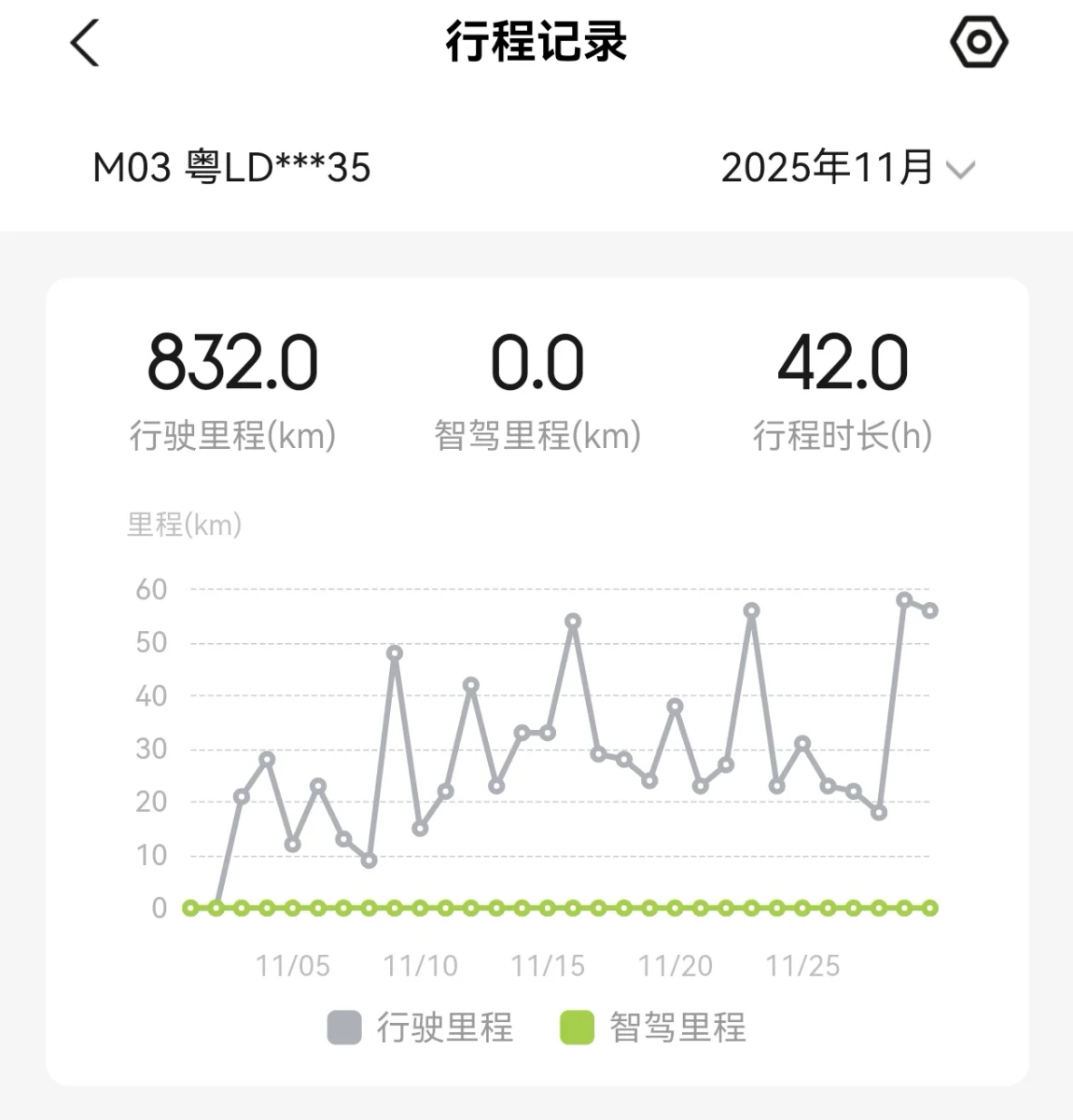 行驶与能耗:十一月累计开了832公里,主要是市区通勤和周末短途出游。综合能耗11.8kWh/100km,比十月略低;CLTC 620km版本实际能跑420-450公里,跨城300公里不用补能,续航够稳。