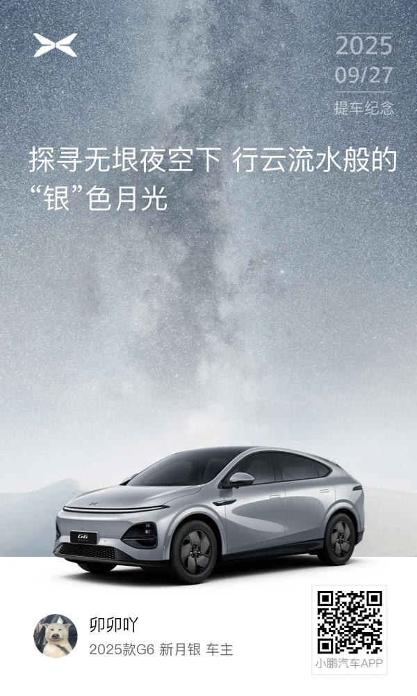 #我的2025小鹏印记# 今年9月27日,我终于把心心念念的小鹏G6提回家啦!之后每个周末,它都载着我开启欢乐旅程。去郊外看层林尽染,阳光透过树叶洒在车身上,智能座舱里放着喜欢的歌;温柔的秋风吹得人神清气爽。有小鹏G6陪伴的周末,每一次出发都满是期待~