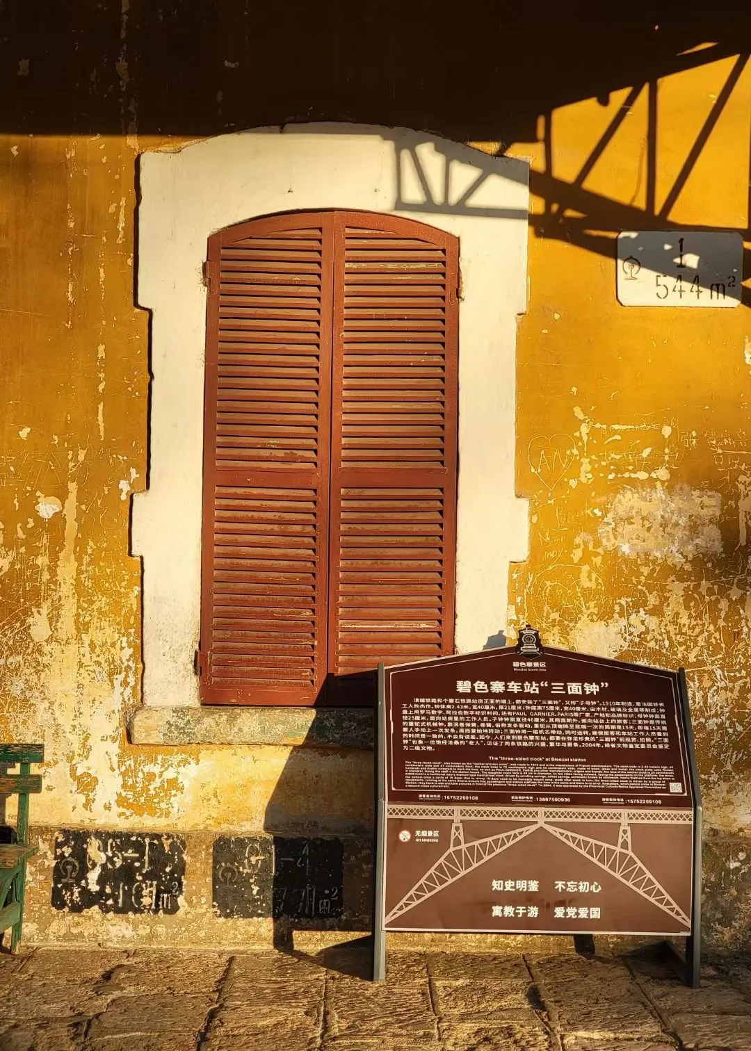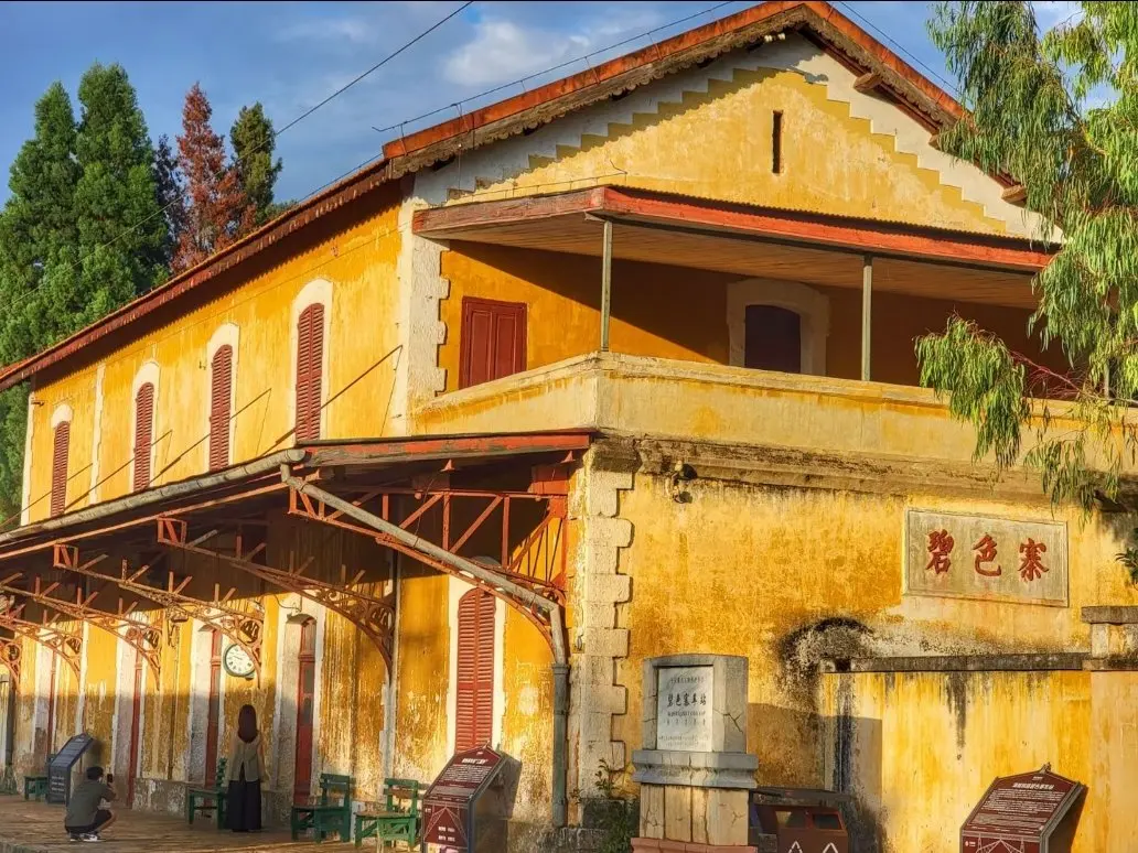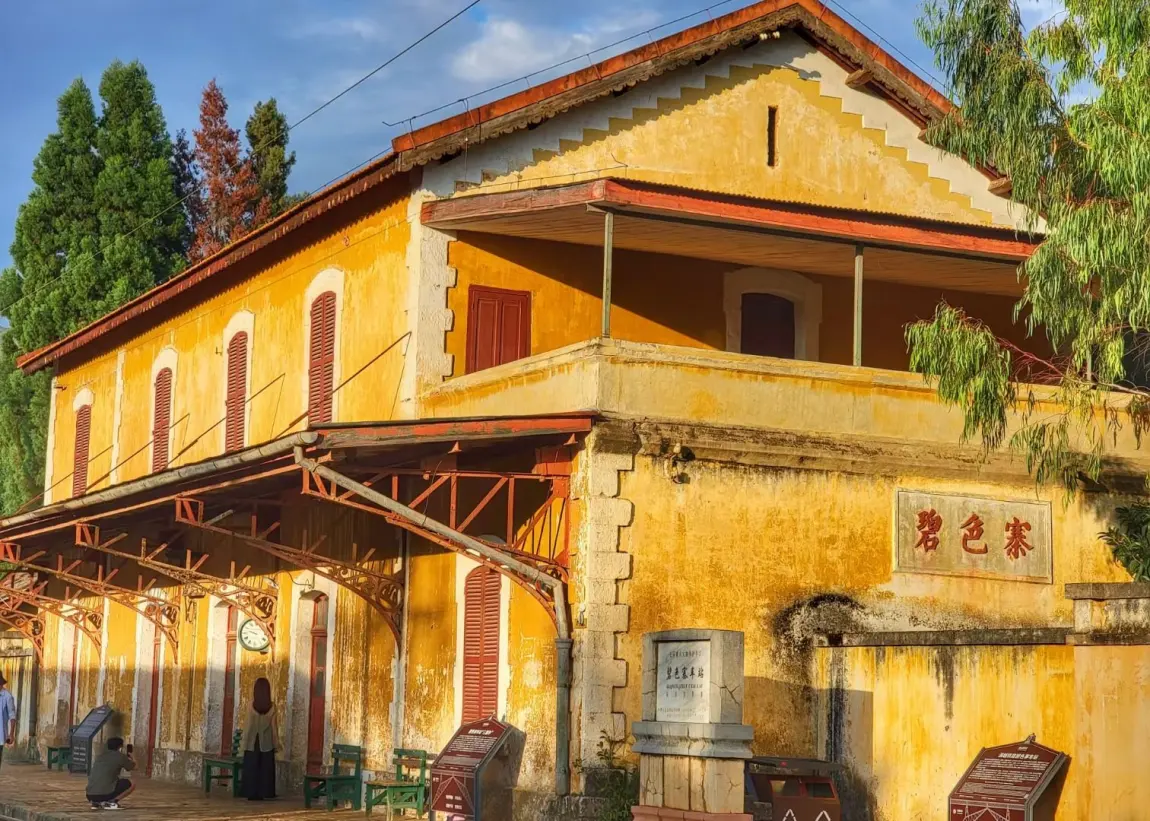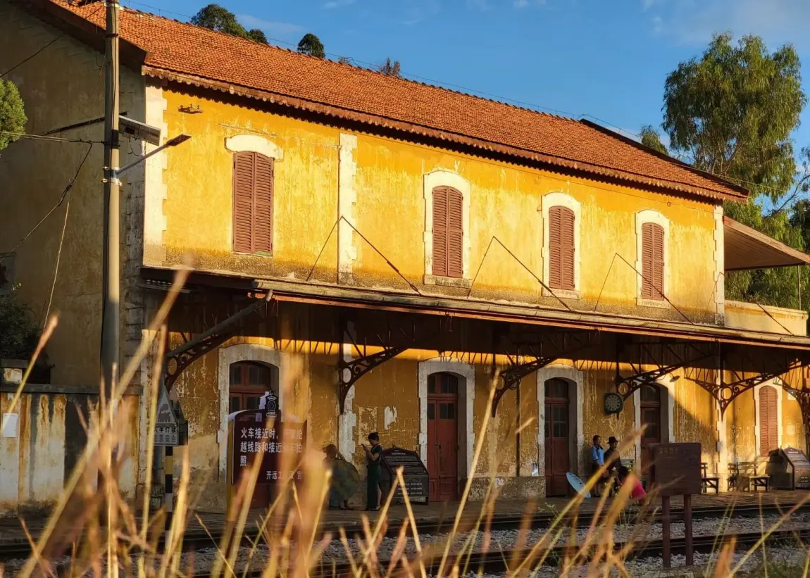 Day 1:抵达蒙自的第一个下午,我直奔碧色寨。这座因电影《芳华》而闻名的小站,比想象中更加宁静。斑驳的黄色站房、静止的法式时钟、延伸向远方的米轨铁路,一切都保留着百年前的模样。