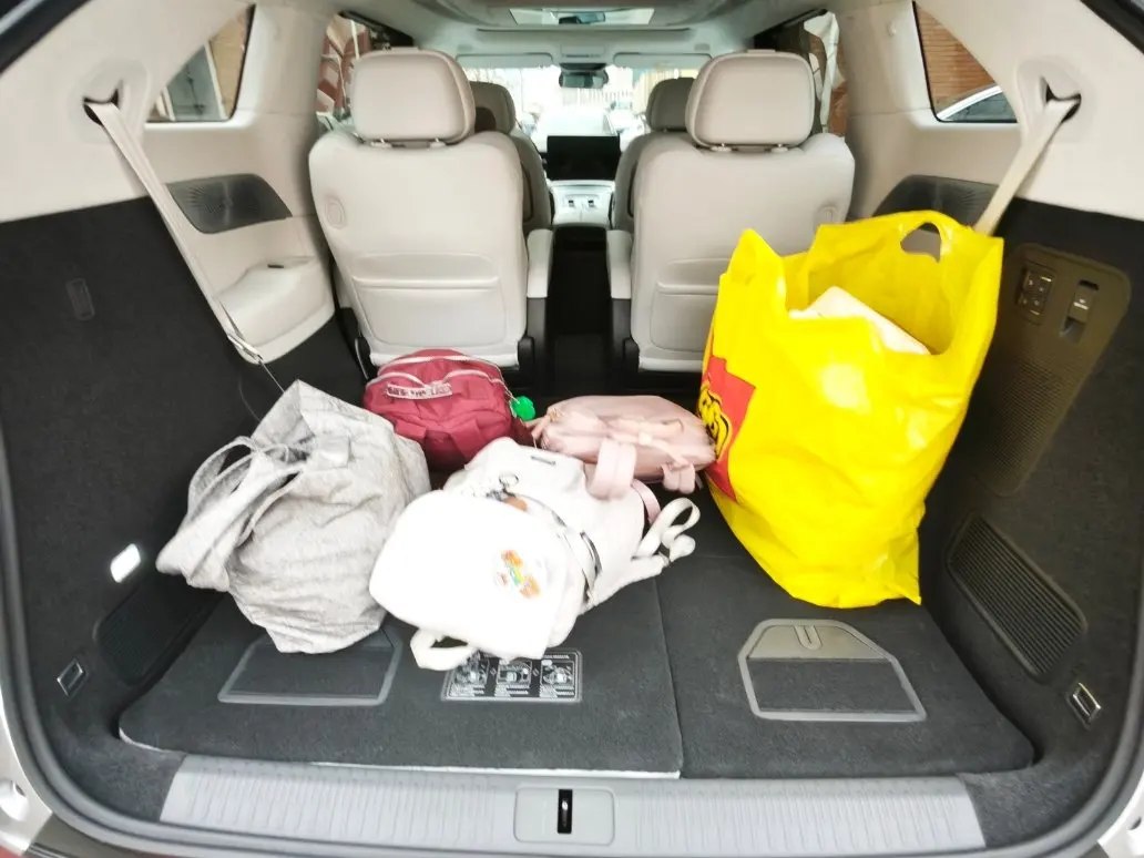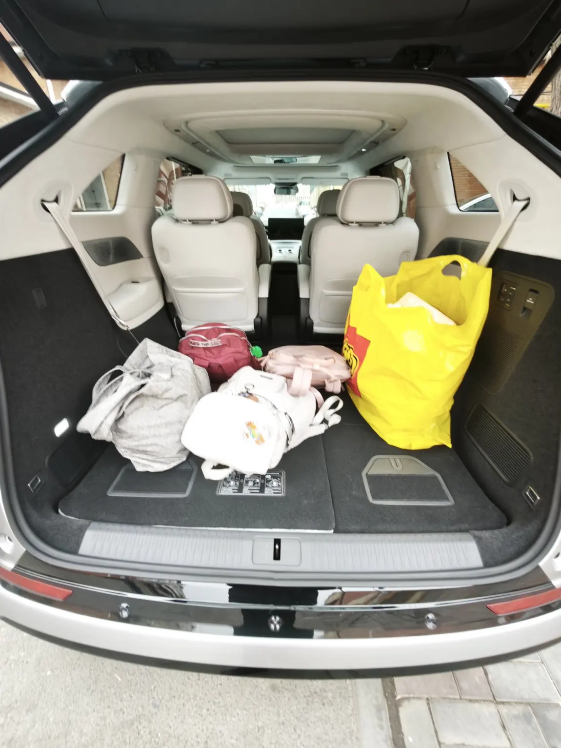 在出发前 装车的时候发现 当把三排放倒后 二排的空间如此之大 大到孩子可以在边上蹦蹦跳跳 后备箱大到都不知道放点什么好 我的G3 放这些东西早就满了 而且还得是规划的整整齐齐 把高度尽可能的用上 而我的x9 随便一扔 还有那么大的空间 感叹我的车内空间从来没有如此的富裕过