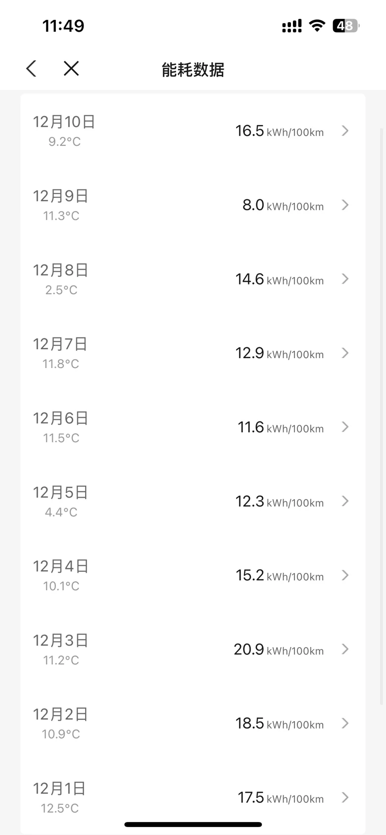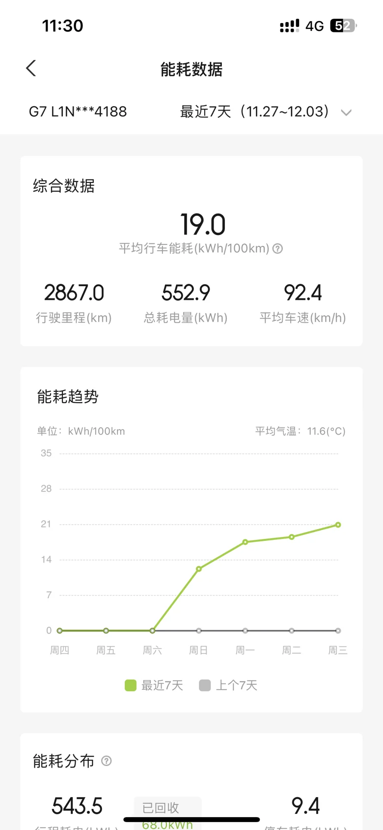 再看单日的波动,4号开始就是正常通勤来回70km路程的能耗,有图片大家可以看看