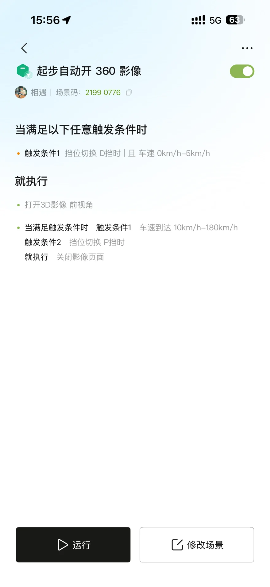 这个场景对于很多朋友开车不是很熟练,不能判断车身周边距离,尤其是新手朋友来说特别实用,只要你上车挂上D档,他就会自动触发帮你打开360,再也不用担心车边上有障碍物,或者比较窄小的马路,巷子不好开不敢开的情况了