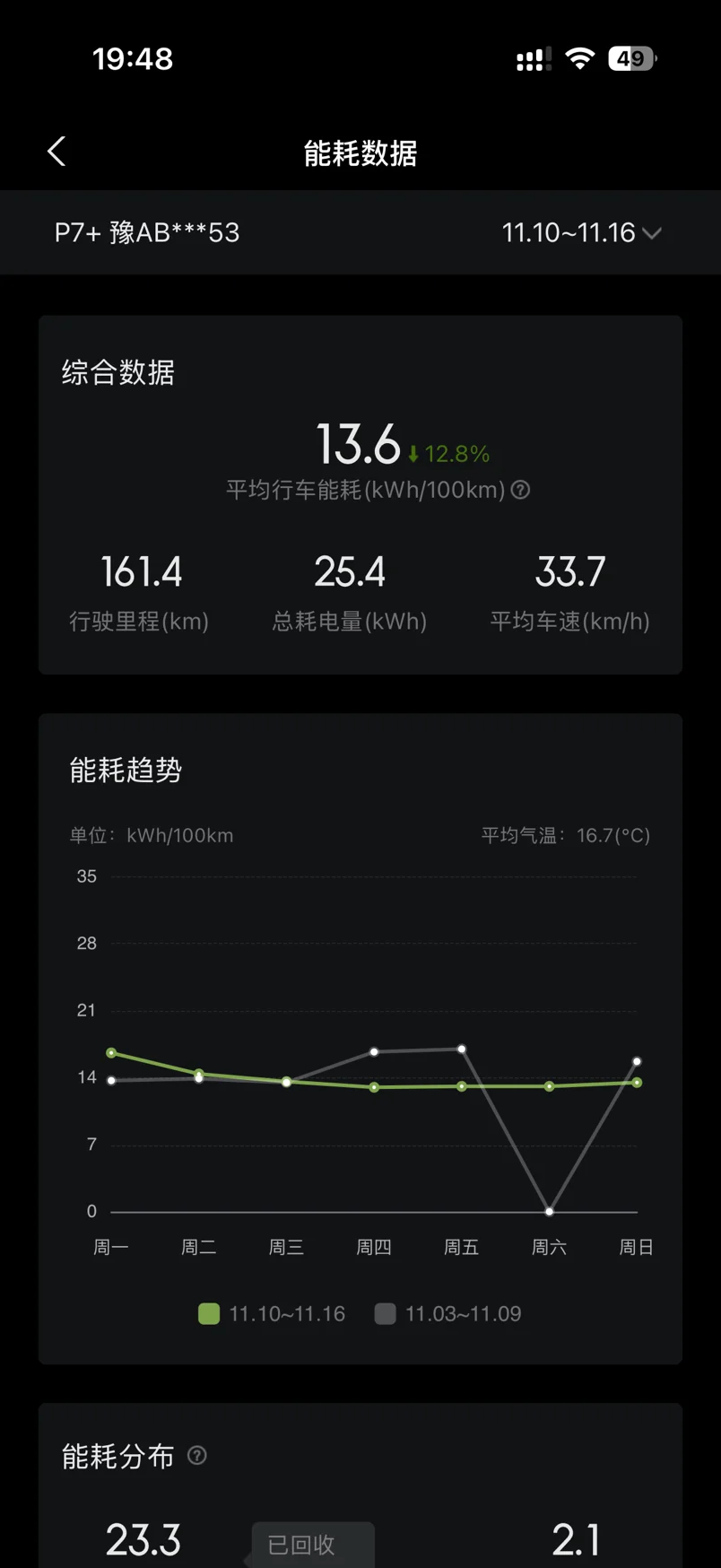 整个11月行驶约600公里,市区与快速路各半。表显平均电耗稳定在15kWh/100km左右。降温对续航确实有影响,满电实际续航比春秋季少了约30-40公里,但提前规划行程并无压力,整体仍在预期之内。