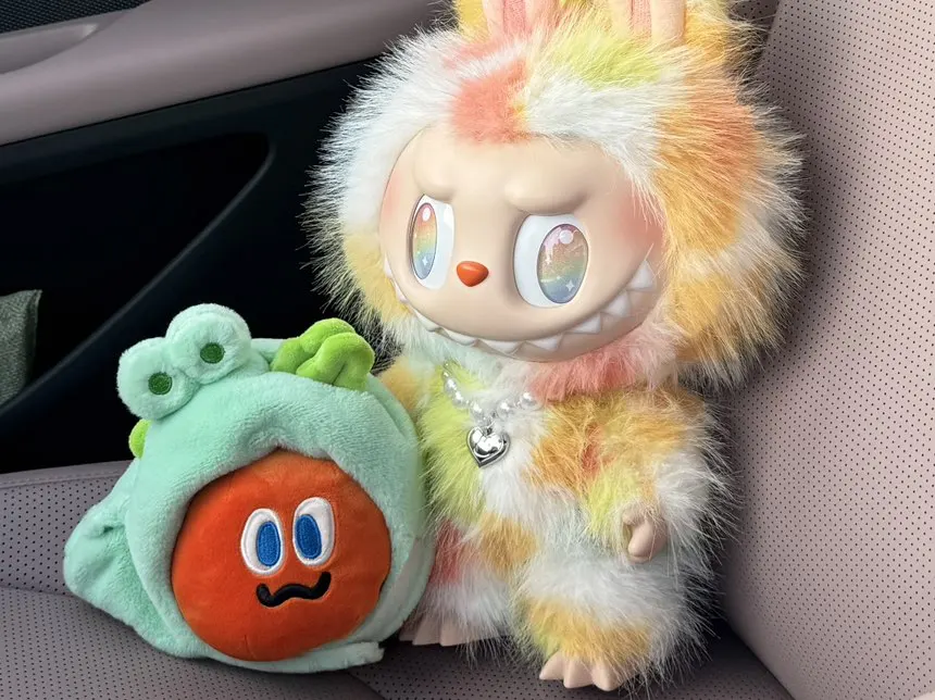 早高峰通勤的路上,会把刚买的拿铁搁在杯架,玩偶仿佛也在陪我喝早咖;当我深夜独自一人开车的时候他们也是我的搭子,陪着我继续前行!