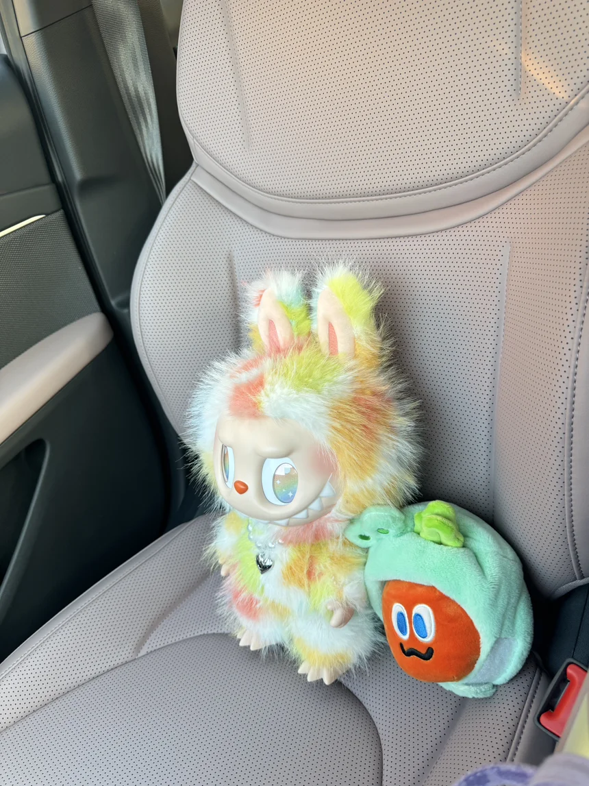 提车后就把拉布布和噗噗放在了副驾——虽说副驾常空着,却从没缺过温暖。