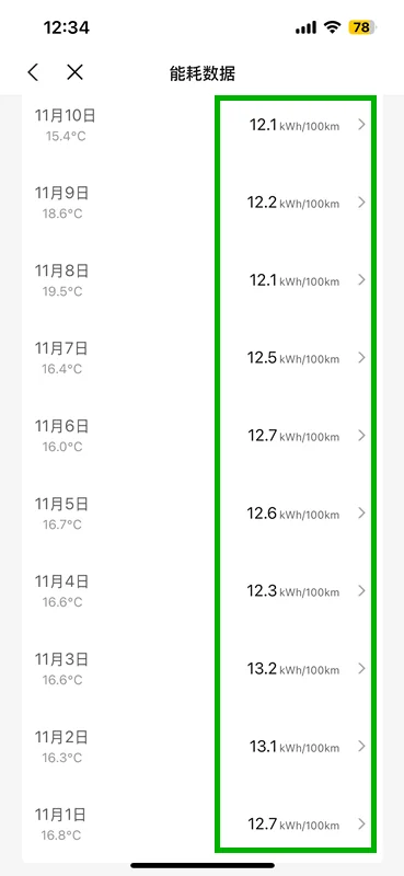 首先声明我不是猛踩电门急踩频踩刹车的那种激烈的驾驶者,也不刻意去省电,且我平常主要在成都市范围通勤日常。我大多时候用“能量标准回收模式加速小鹏的X-Pedal模式驾驶”,几乎极少甚至不用踩刹车,真心好用,这方面完全不输甚至超越特斯拉。没有过多弯道与起伏的平原对电动车非常友好。即便本次去川西看彩林沿途有非常多的陡坡弯道,以及高海拔低温区域,G9的表现依然亮眼,能耗非常低。数据就是最好的诠释。详细数据按天分享如下: