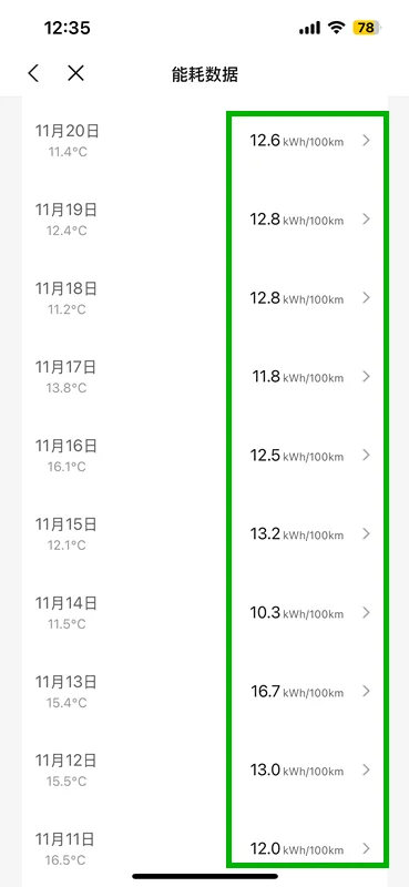 通过以上的每日能耗数据看出G9超级省电,且车重比Model Y大。