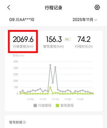 鹏友们,大家好。我两岁的G9在11月份总计行驶2069公里,去川西跑了一次长途看彩林红叶约1000多公里,其余是在成都市通勤日常。大家都知道,深秋的气温越来越低,低温就意味着能耗增加。我的G9能耗究竟表现如何,现在就和鹏友们分享。