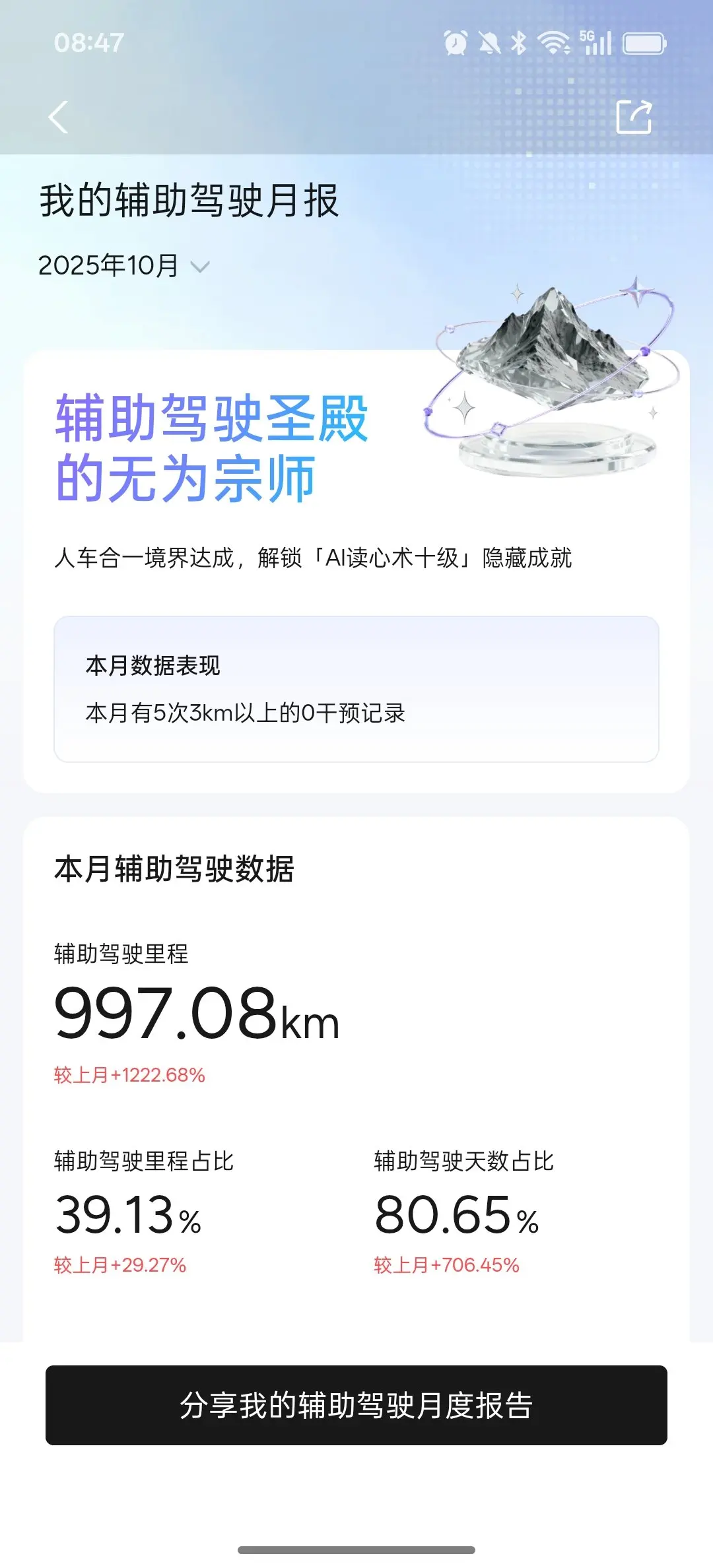 提车才两个多月辅助驾驶里程2616km,数据见证每段安心旅程,这波体验感拉满👍!