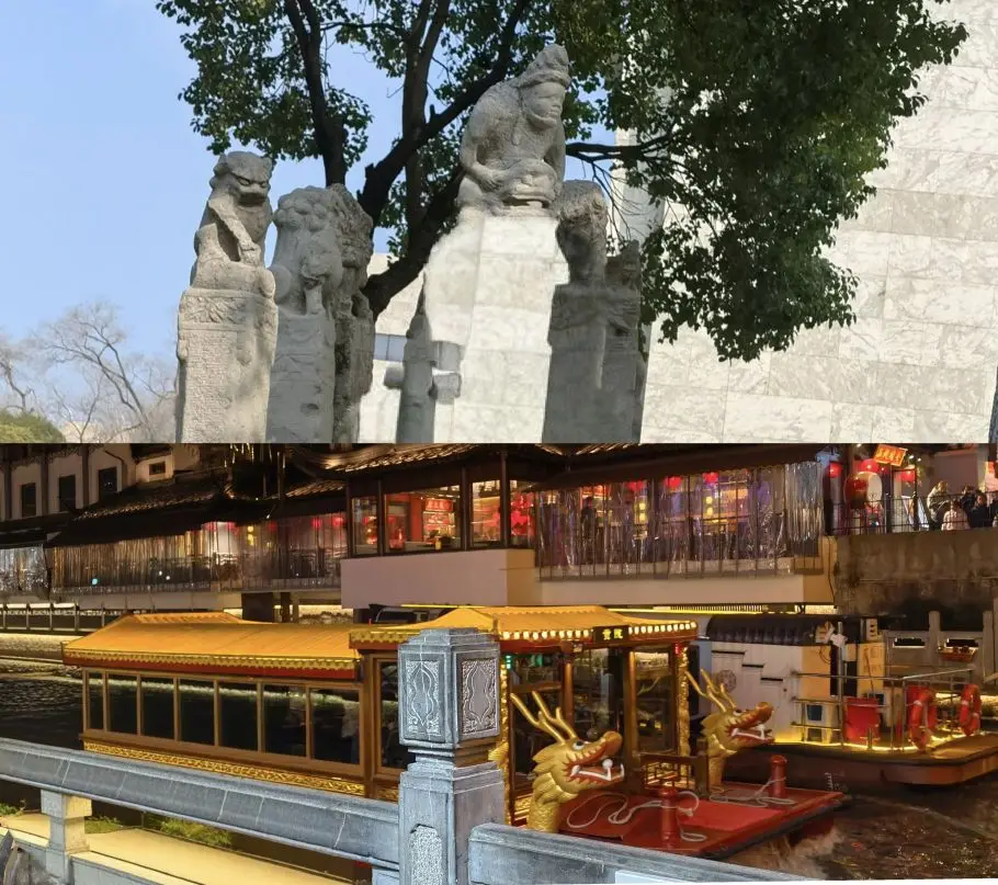到了南京晚上去了秦淮河看看夜景,逛吃逛吃。约了第二天的南京博物馆,谁知道娃发烧了不舒服,只能在外边看看了。