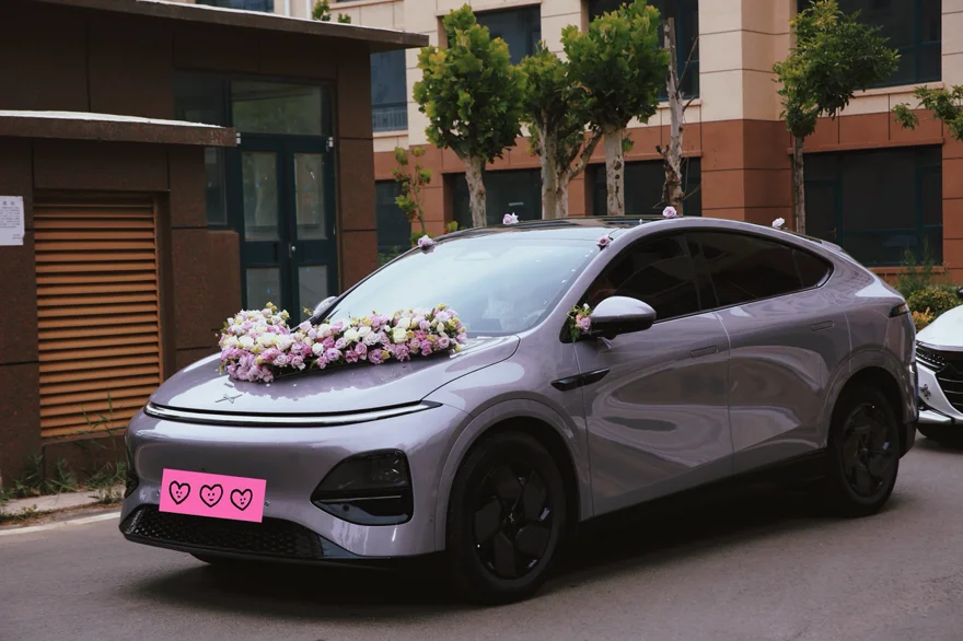 我和先生都很注重仪式感,举办答谢宴的时候,选择了用自己的小鹏g6作为婚车,车的颜色选择的紫色寓意也是非常好,紫气东来,紫定上岸,紫定发财,紫定健康 ,紫定能行 ,紫定成功,紫定快乐,紫定幸福,紫定顺利紫定不加班,紫定能瘦,紫定靠谱!我的小鹏友也是见证了我的幸福时刻😘