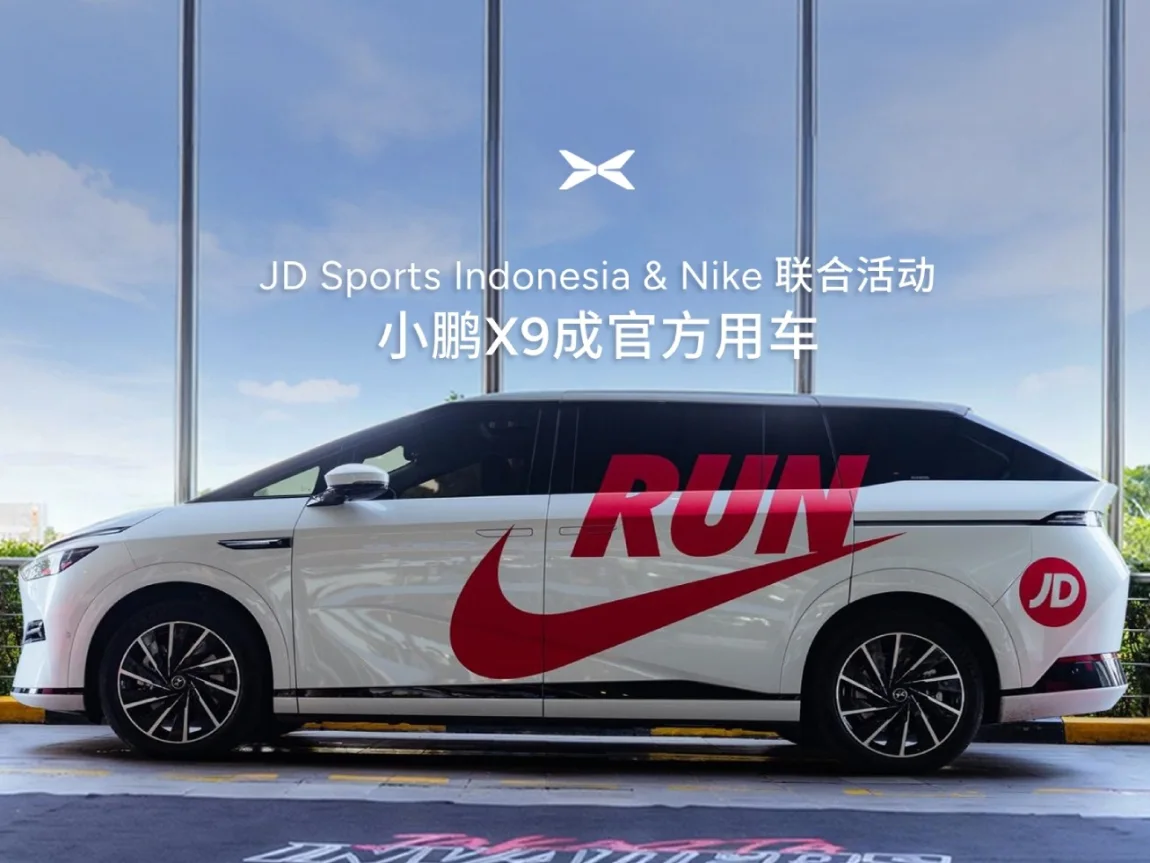 小鹏X9在JD Sports Indonesia 与 Nike 联合举办的大型城市跑步活动中,成为活动的官方合作用车。“星舰”造型叠加 Nike 定制车衣,领跑街头潮流新风尚!