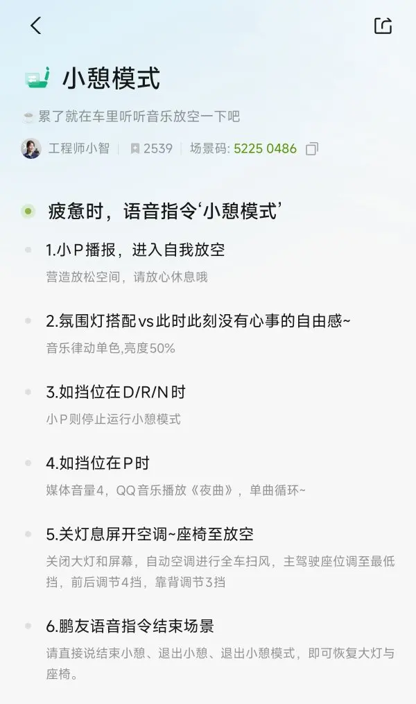 作为一名小鹏G6车主,我最想分享的智慧座舱功能,是我自己用“智慧场景”精心编排的 “小憩模式” 。它完美解决了我在工作午休、长途驾驶后、户外野营的休息需求。下面让我给大家分享一下吧👏
