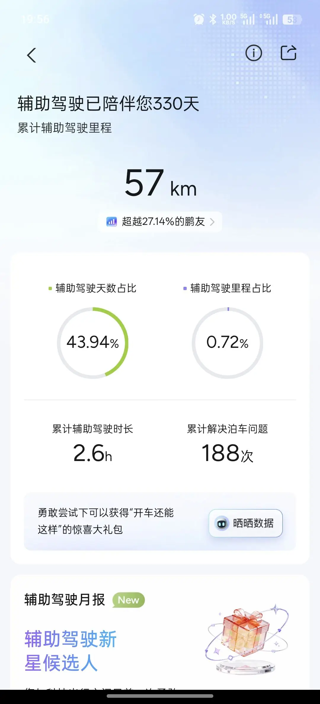 2025,是和小鹏M03相伴的第一年。从提车时的满心欢喜,到无数个清晨傍晚的并肩同行,它不仅是代步工具,更成了我的“移动小家”。13749km的里程里,藏着通勤路上的从容,周末出游的惬意,还有雨夜归家时的安心。188次自动泊车稳稳停靠,57km辅助驾驶轻松护航,每一个数据都定格着温暖瞬间。新岁将至,期待继续与小鹏一起,奔赴更多山海,收藏更多美好印记~