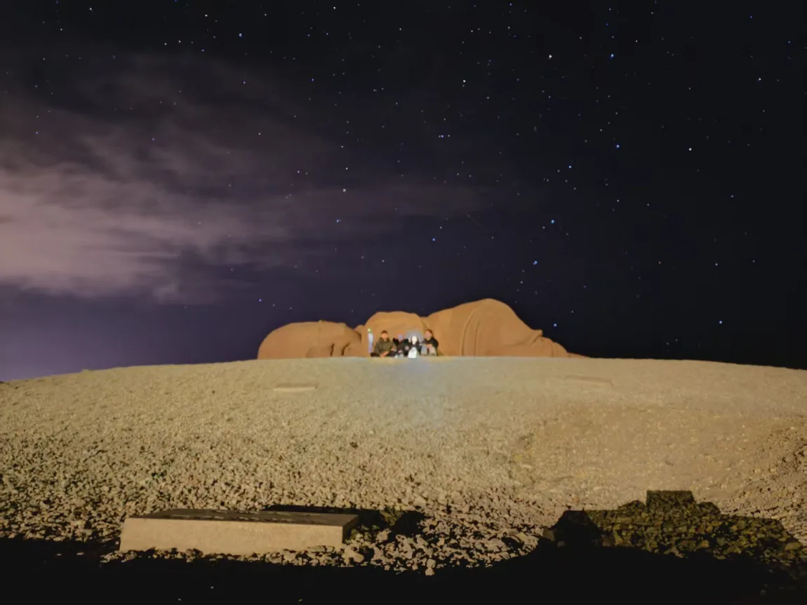 4.鸣沙山:这里的景观自带 “人文滤镜”—— 沙丘连绵如海浪,驼队走过时留下的脚印,让人想起古商队穿越沙漠的身影。没有旺季的人潮,我踩着细沙走到沙丘顶端,看夕阳把沙漠染成金红色,远处的月牙泉像一颗蓝宝石嵌在沙中,随手拍都是 “人文感 + 自然美” 的画面。