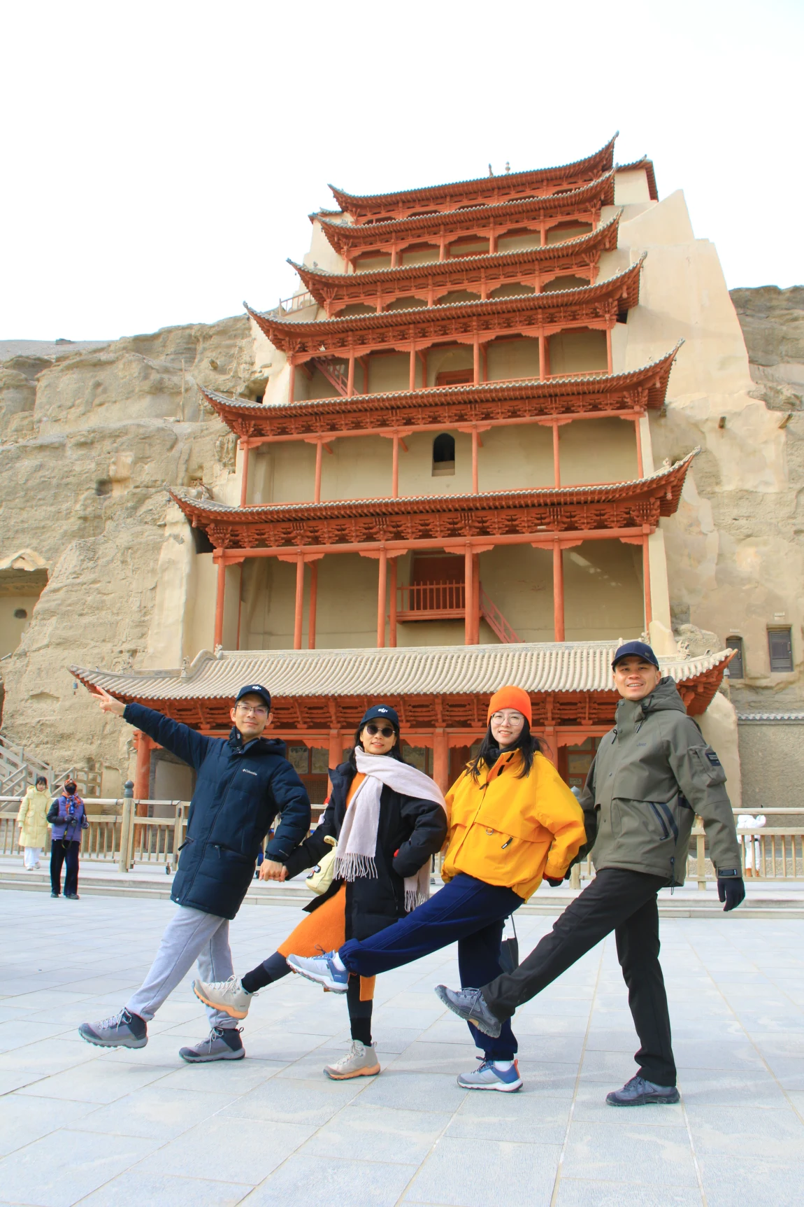3.莫高窟:冬日的清净更适合感受这份人文瑰宝:在九层楼前驻足,看崖壁上的洞窟如蜂窝般排列,走进洞窟,飞天的飘带、供养人的衣饰、佛经故事的壁画,每一笔都承载着魏晋至元的文化脉络。