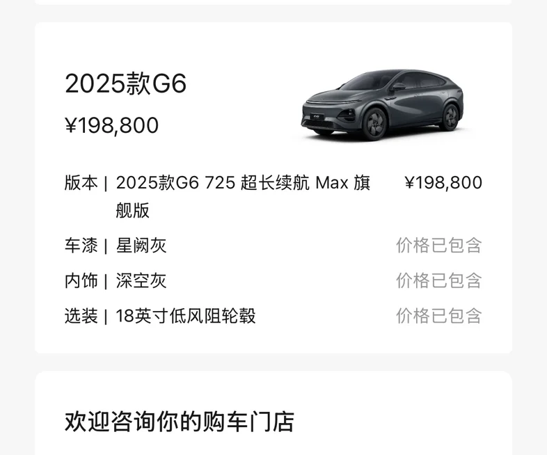从看车,试驾,到提车小鹏的服务都非常棒,目前开了1个月体验也不错,对于25款G6直接给到100分。