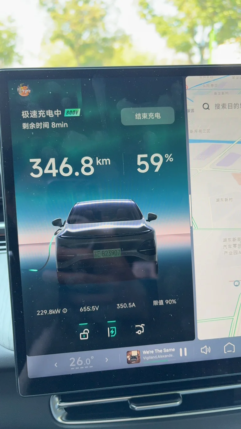 购车权益送了电卡,所以除了家充也还是会去外面充,体验下G6 5C超充的速度。充电速度真的是有点东西,80%以下基本一直是200多KW的速度充电,在车里躺一会听会音乐或是看会电视就满了,这速度也是我没想到的。