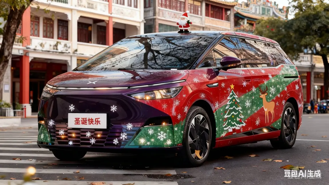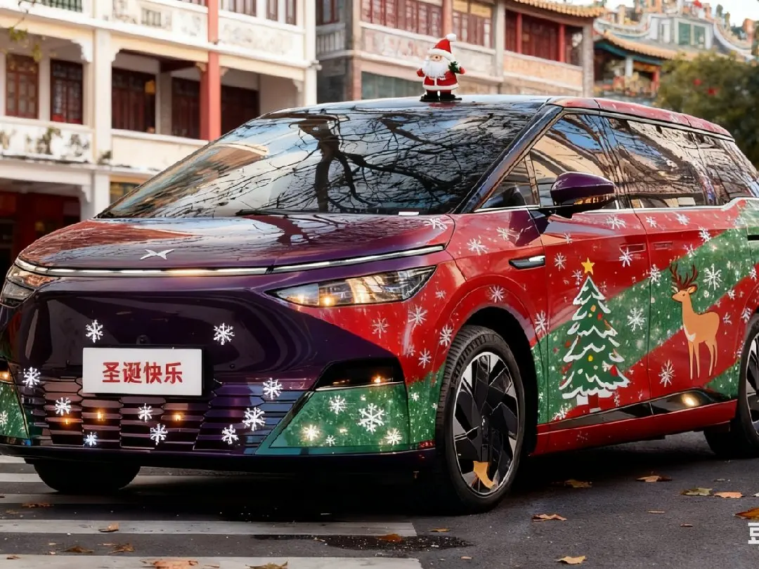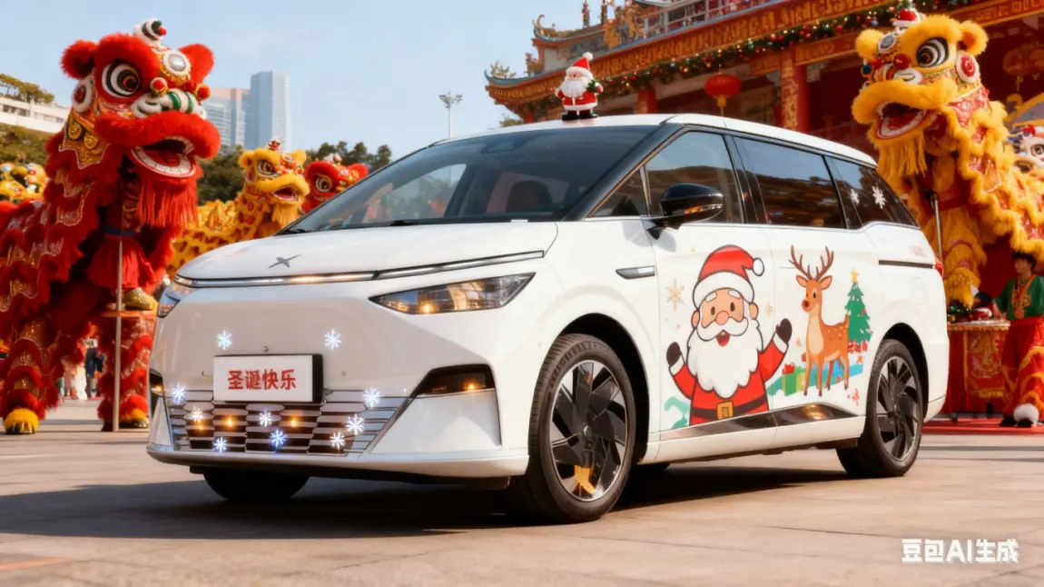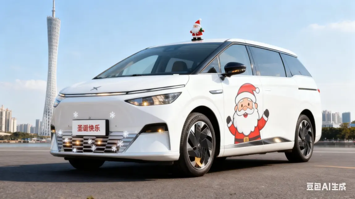 给我的2025款小鹏X9换上圣诞涂装后,逛遍广州的地标。白色车身印着圣诞老人、麋鹿与圣诞树,格栅雪花灯效闪闪,车顶圣诞装饰超吸睛。从小蛮腰下驶过,红绿色涂装和霓虹相映;遇着街头舞狮,中西元素碰撞出别样年味;到长隆欢乐世界时,X9成了圣诞氛围里最亮眼的粤式座驾,这个圣诞因它更有滋味。