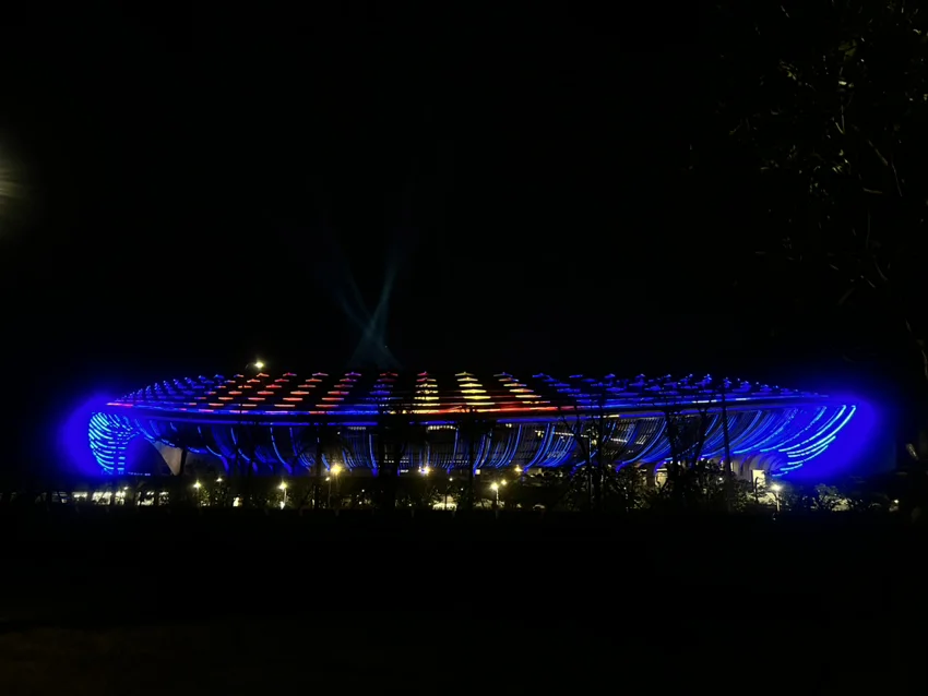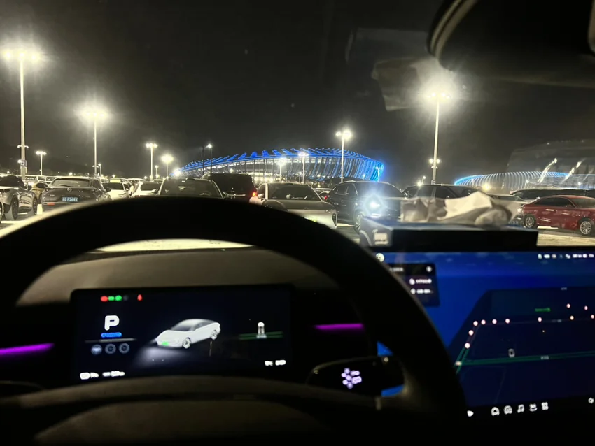 当导航提示目的地临近,大湾区体育馆那巨大的弧形屋顶,就像一枚温润的贝壳,静静地搁置在陆地的尽头、海天的背景板前。我把车停进停车场,没有立刻离开。靠在车边,远眺那座即将点燃数万人热情的场馆,在冬日的暮霭中显得既庄严又温柔。我的车安静地停驻在此,仿佛一个即将投入盛大故事的句点前的逗号,蓄满了温柔的期待。