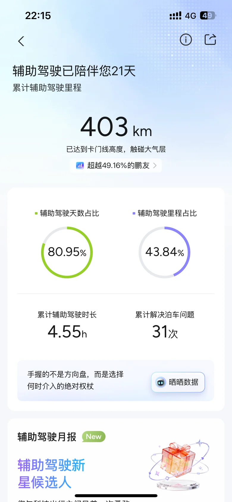 ✅ 403km智驾里程,80.95%的使用天数,通勤/高速全靠它