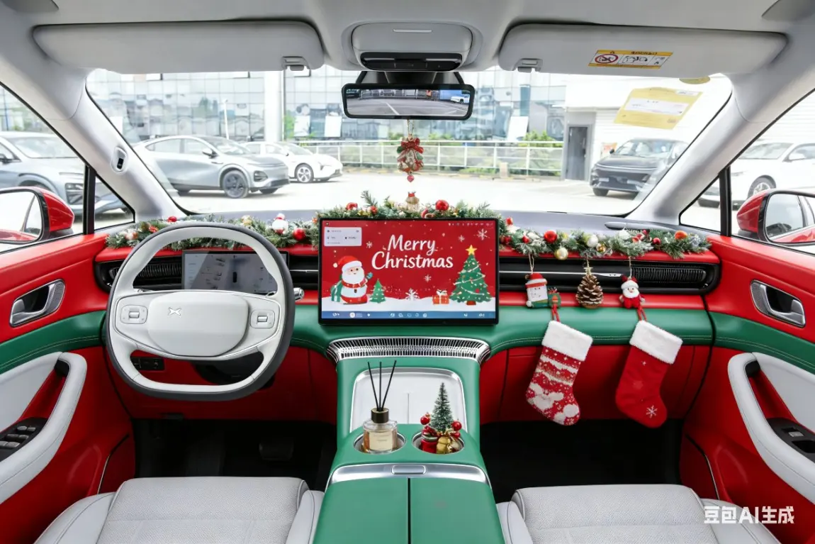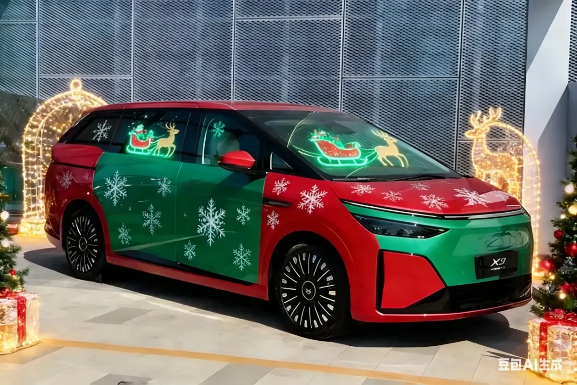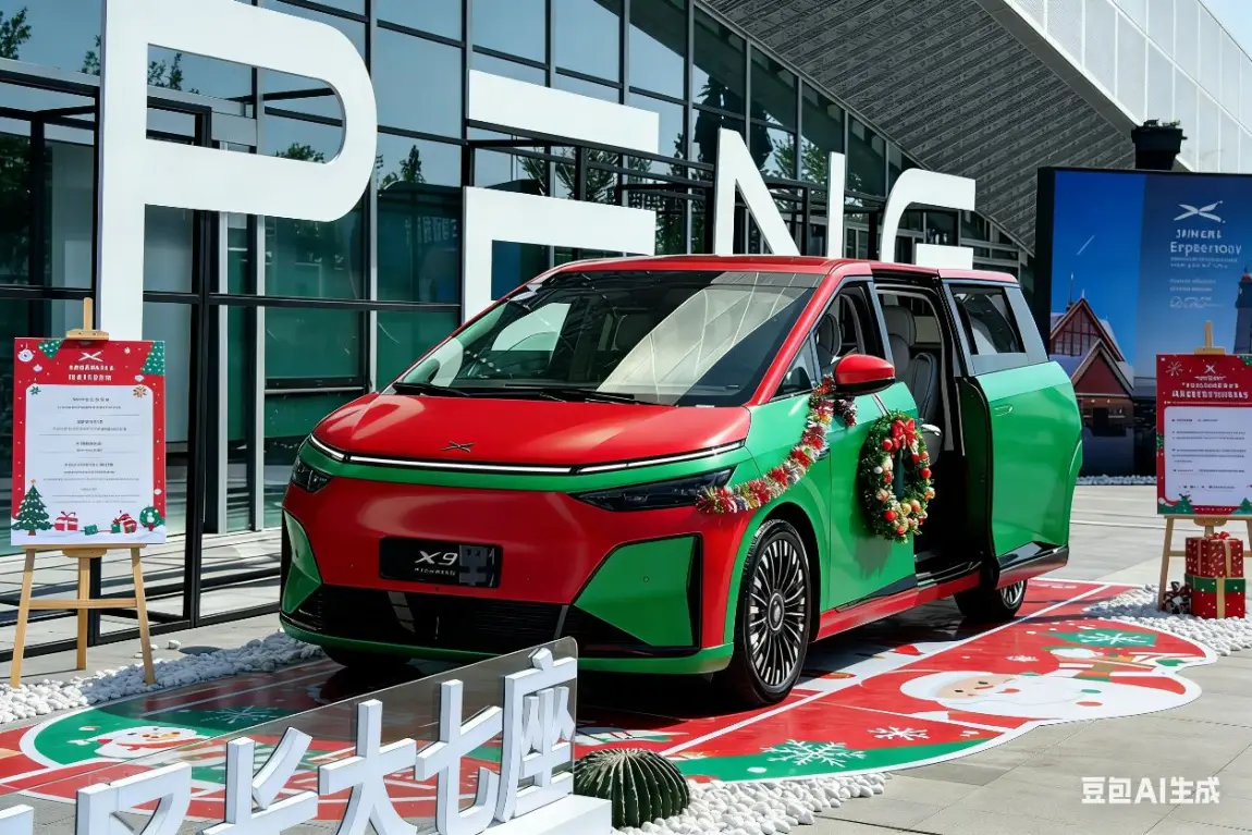 #我的圣诞魔力座驾# 圣诞氛围直接拉满的快乐谁懂啊!把我的小鹏X9改成红绿圣诞配色,内饰再搭上圣诞装饰,直接变身移动的圣诞小屋,开在路上回头率爆表💯
