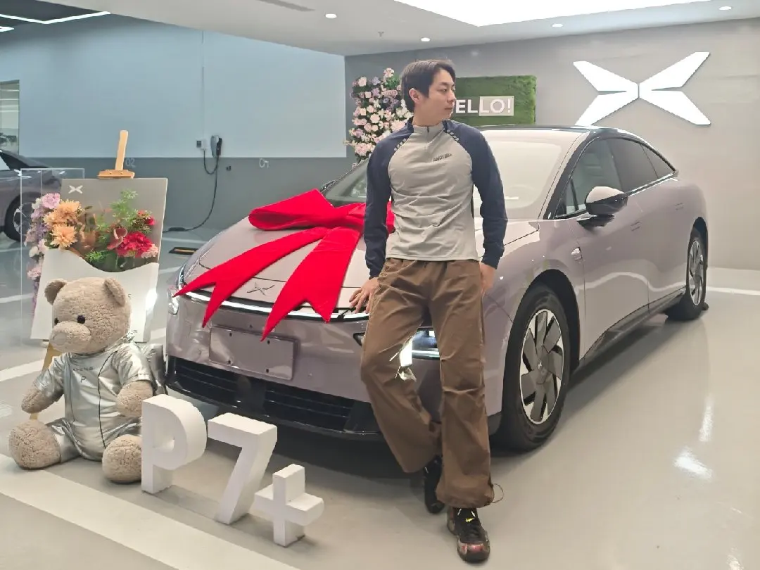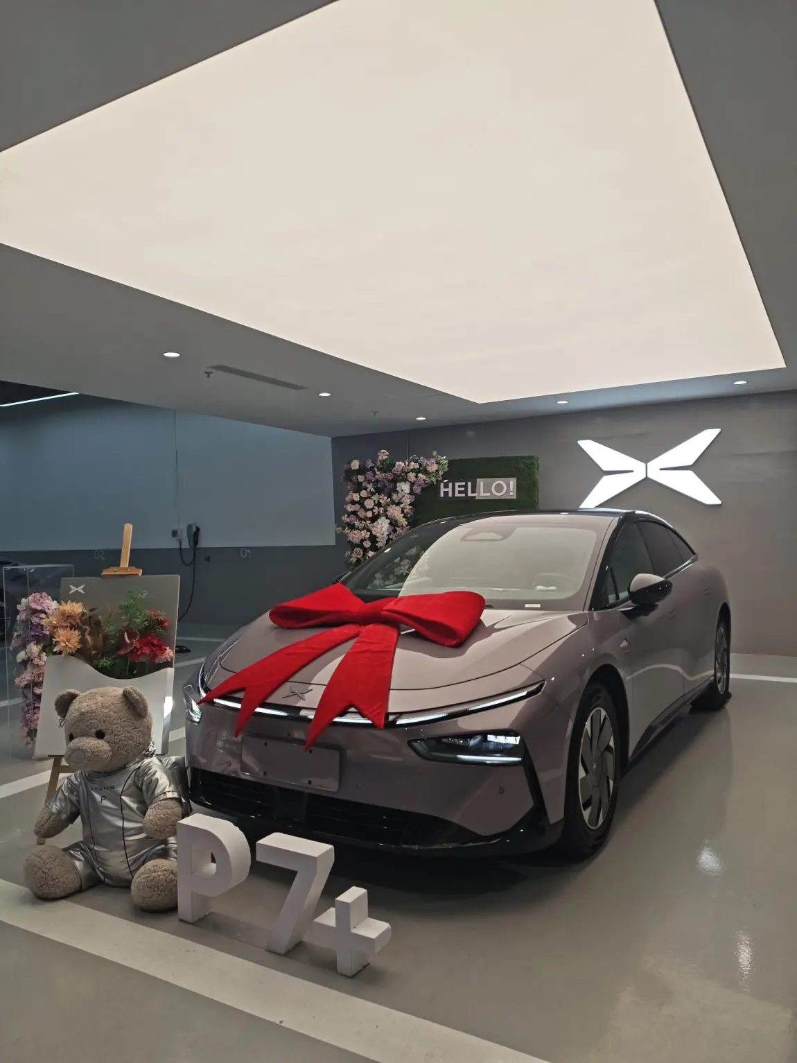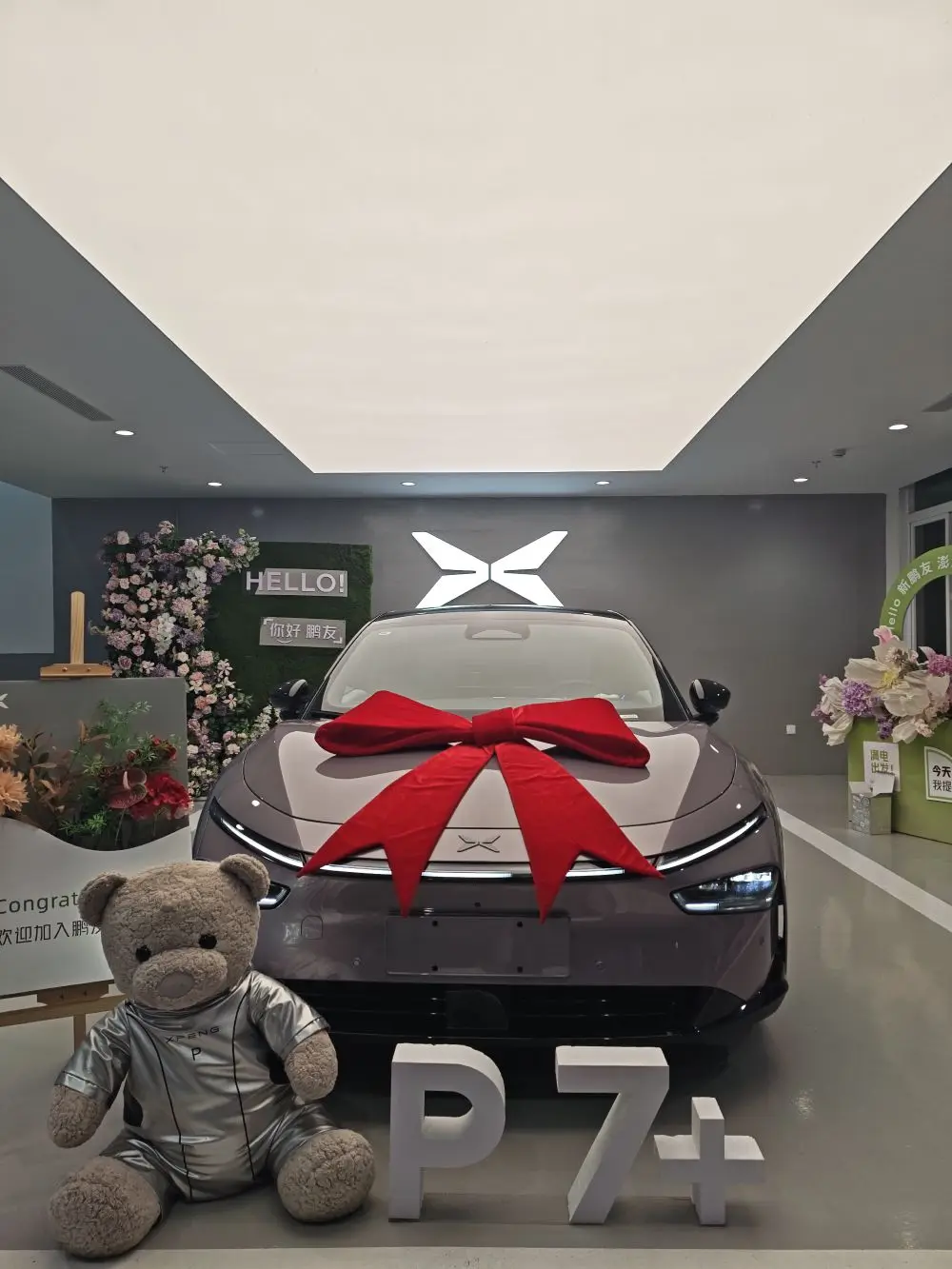 终于把星暮紫的小鹏P7+开回家啦!提车现场布置得很有仪式感,大红蝴蝶结、太空熊玩偶和花墙合影,瞬间get“鹏友圈”新身份~工作人员全程VIP服务,连交付流程都像在参加派对!