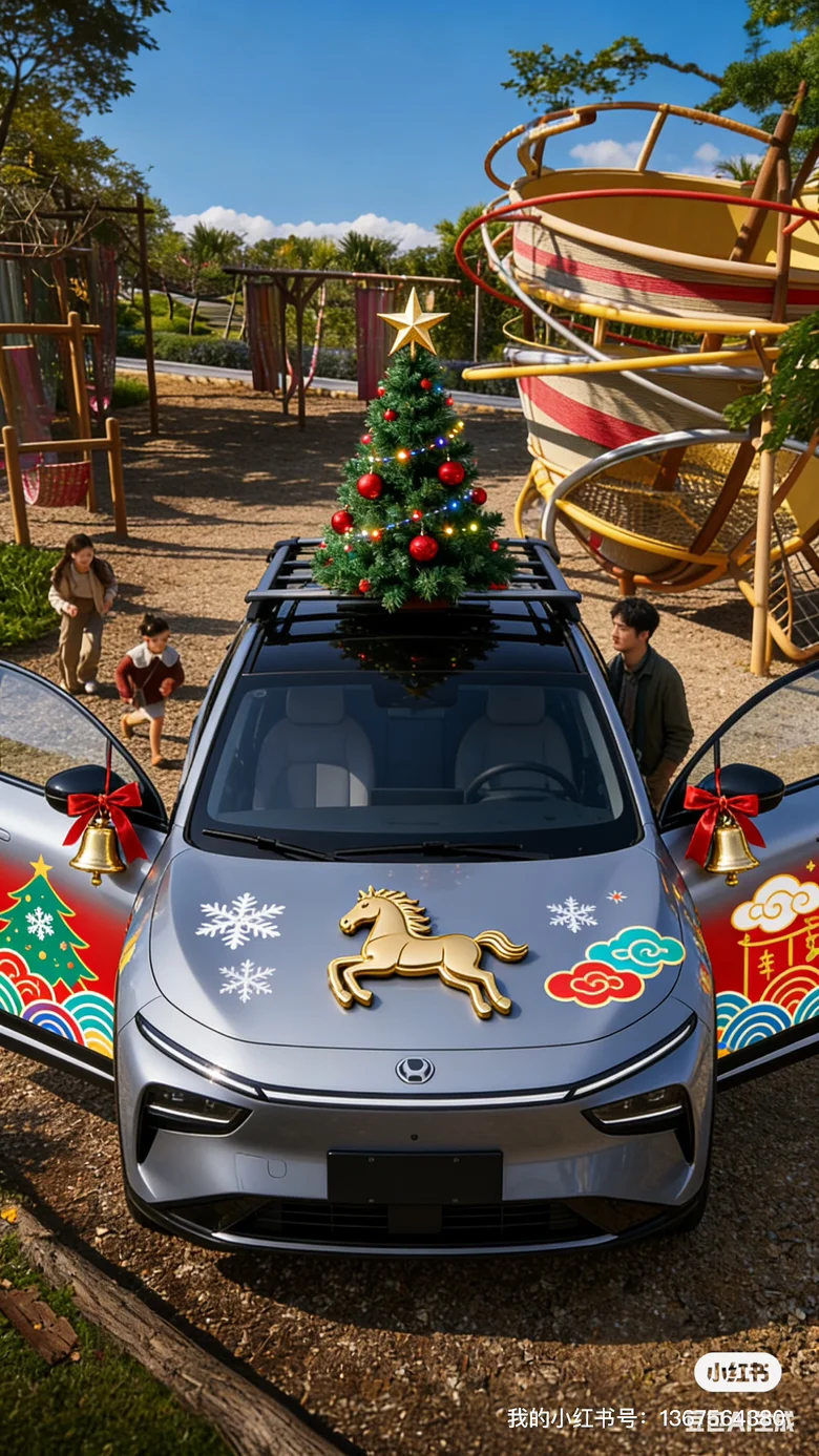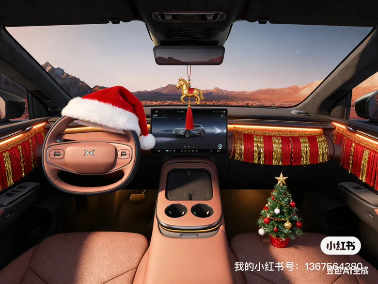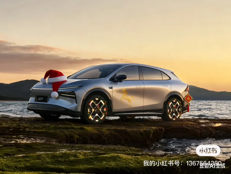 小鹏G7圣诞新年限定装饰,以圣诞帽车标、奔马贴饰、迷你圣诞树等元素,将科技感与节日氛围完美融合,红白金配色尽显温馨,开启新年智驾新旅程。