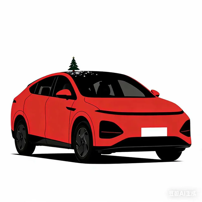 最后这张倒素净,红车身没什么花哨印子,就车顶顶了棵小小的圣诞树,雪粒落在玻璃上,黑白简笔画似的,比前面几张少了热闹,多了点踏实的好看——像我这种懒得折腾的人,说不定真会选这种妆,不用太扎眼,沾点圣诞的边儿就够了。
