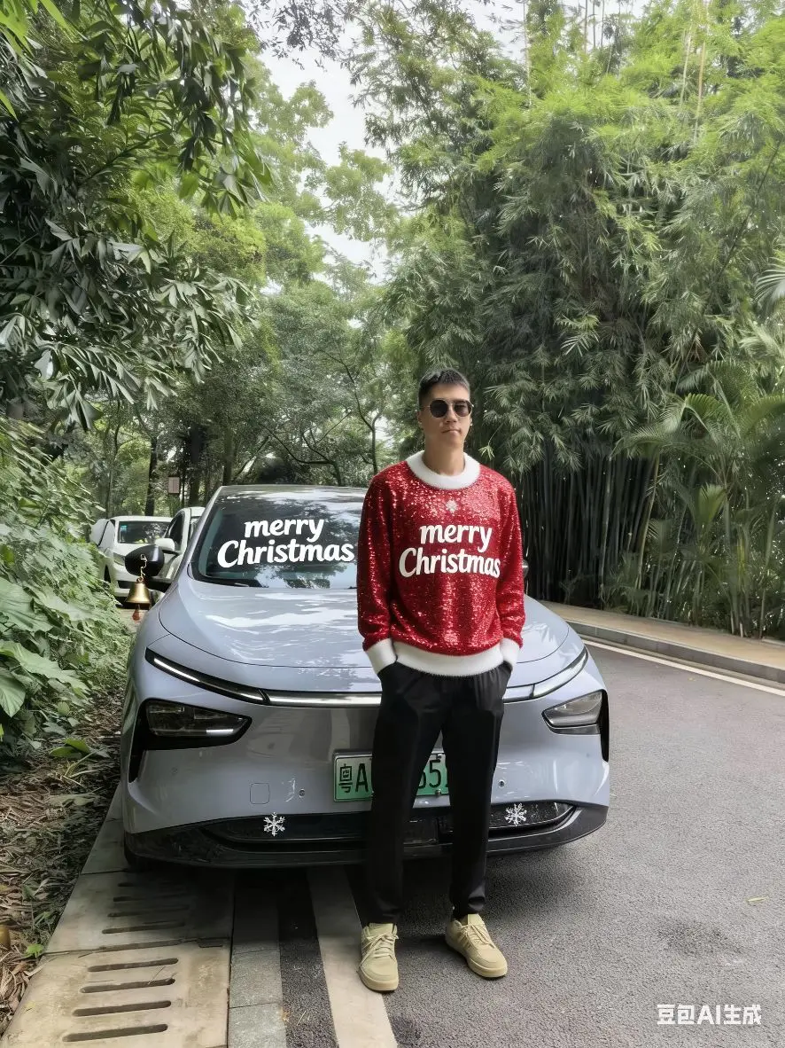 为了和车搭成 “圣诞双子星”,翻出了压箱底的节日战衣: