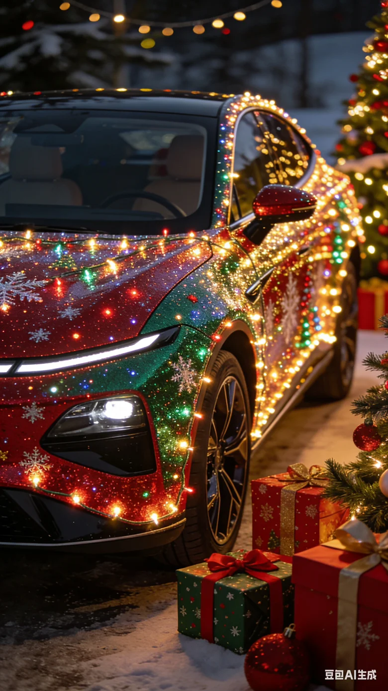 外观换上雪花车贴、红蝴蝶结、小铃铛,车顶再点一棵迷你圣诞树,走到哪儿都是移动的圣诞礼物盒✨