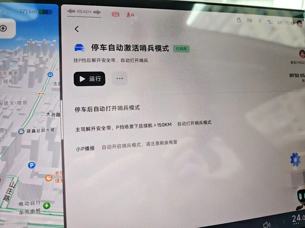 在公共停车场景中,我总是习惯性地开启哨兵模式,以防止意外剐蹭,特别是那些“开门杀”事故。小鹏汽车的智慧场景让我在离开车辆时,只需解开安全带,P档状态下,系统便能自动启动哨兵模式,同时小P还会温馨提醒:“自动开启哨兵模式,请注意剩余电量。”整个过程既智能又无感。