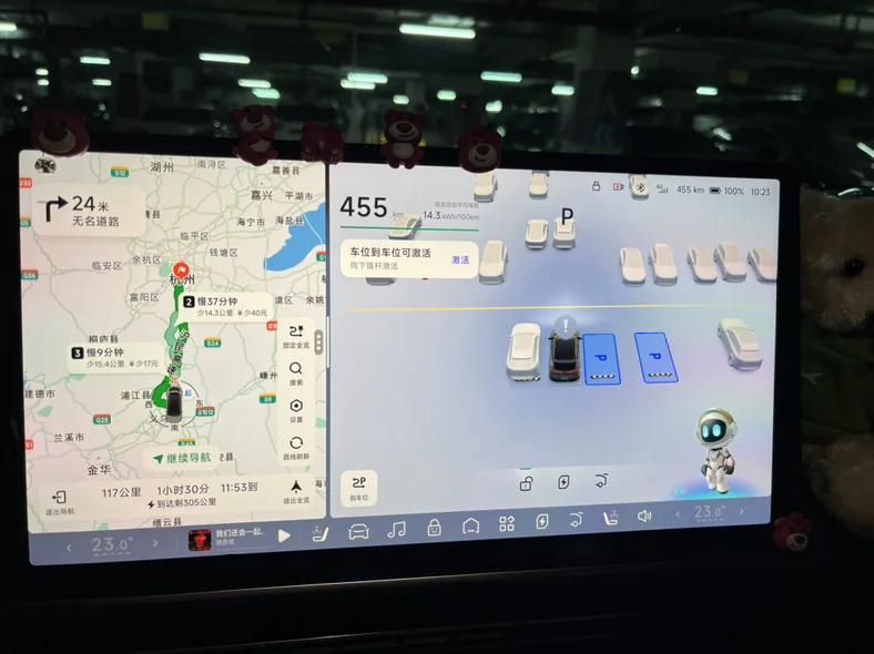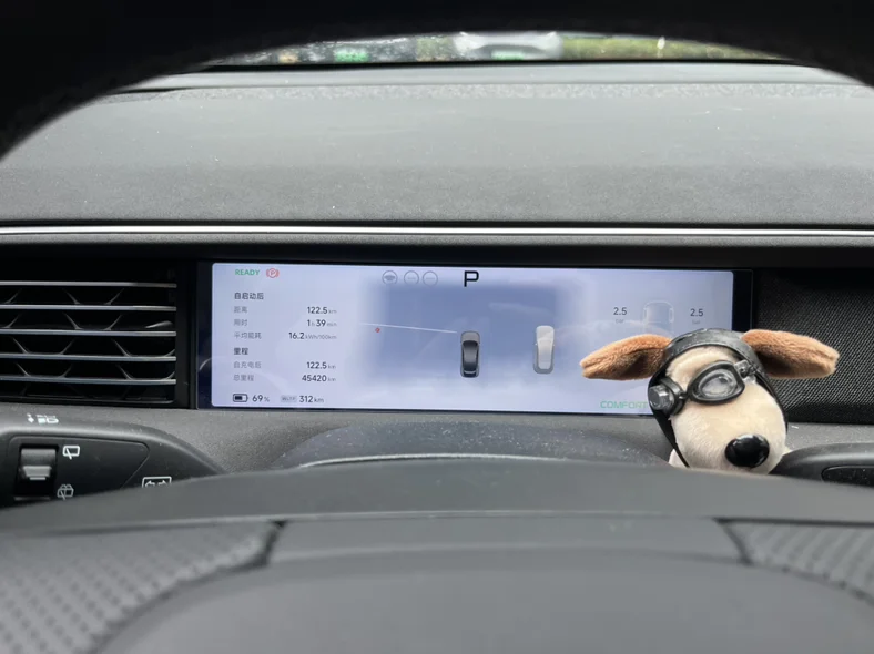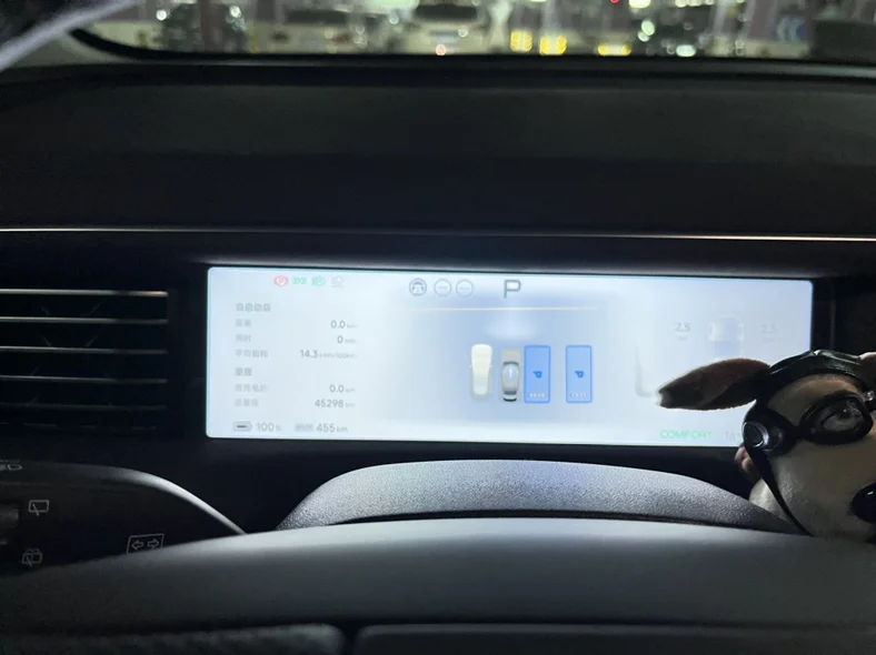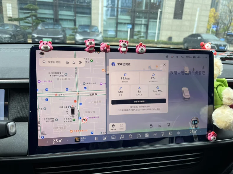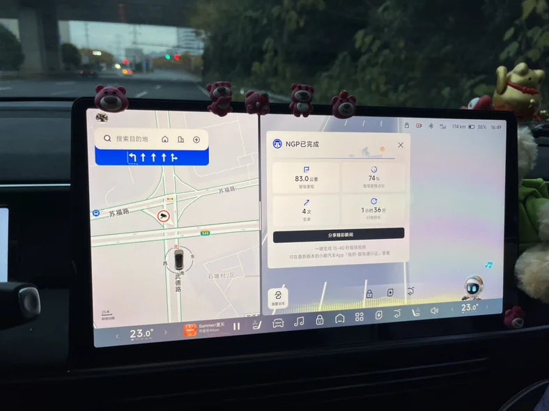 返回G6的座舱,我们就准备回家了。舒适的车内环境,小朋友靠在后排安全座椅上,没多久就抱着玩偶进入了梦乡。返程路上,我依然开启ngp,车机大屏播放着舒缓的音乐,看着窗外渐渐沉下的暮色,再看看后座熟睡的孩子,心中满是幸福感。