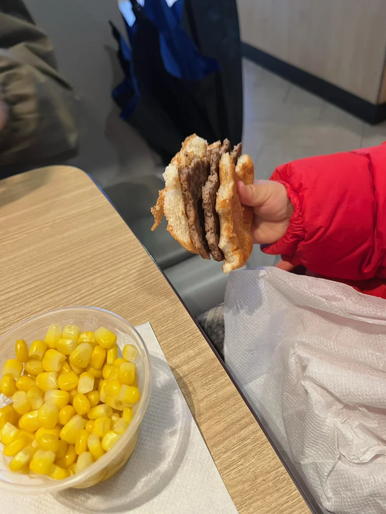 早上十点半才出发,预计12点左右到达。计划到了先去吃午饭,然后再展开玩。一路上的ngp让驾驶变得非常轻松。在路程中我便想好了中午吃什么!没错!就是最便捷的麦当劳!一个牛肉堡(备注不加盐)以前点单,到了便能让小朋友美美的饱餐一顿!中午12.03准时到达。