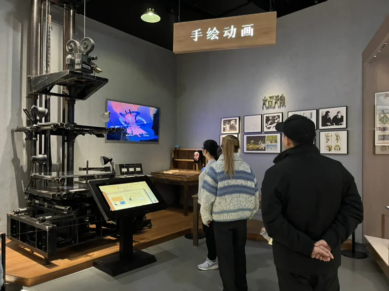 动漫故事展区更是让孩子玩得不亦乐乎。巨型的电子光柱上,水墨风格的动漫画面缓缓流动,各类动画片在光柱上交替浮现,小朋友伸出小手在屏幕上点击,屏幕里的卡通人物也会逐渐变大,清脆的笑声在展厅里回荡。互动体验区的动画制作体验项目,让孩子亲手尝试给卡通角色上色,虽然涂得歪歪扭扭,却成就感满满,举着自己的作品向我炫耀。