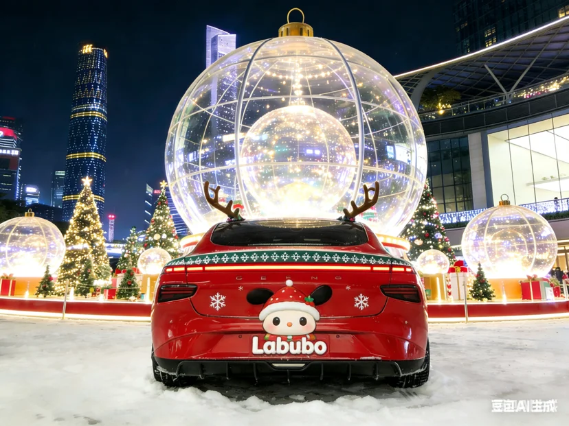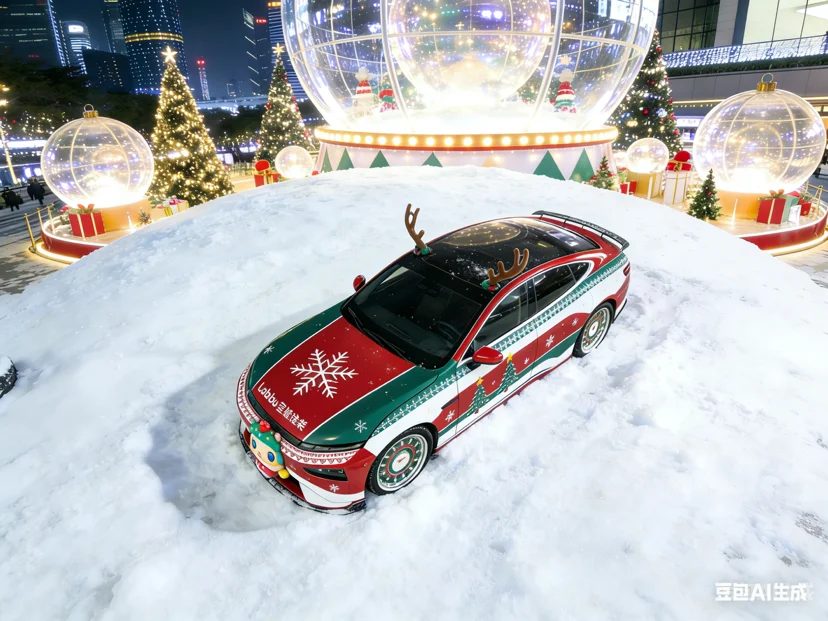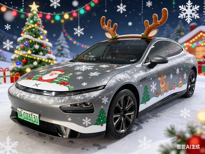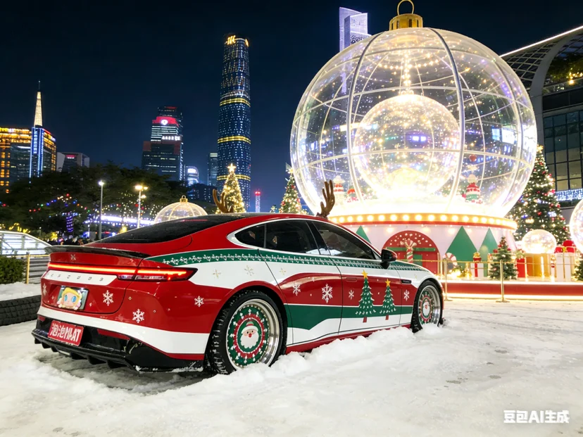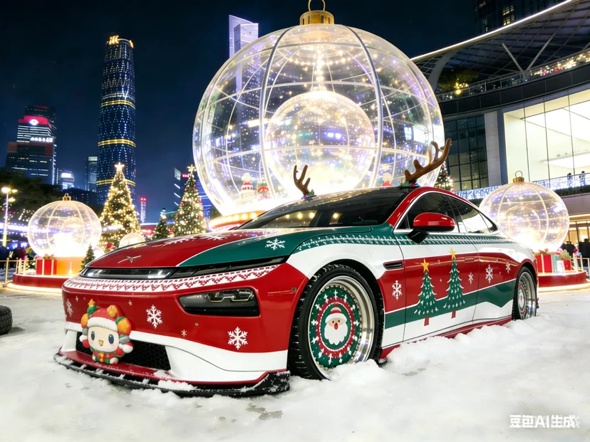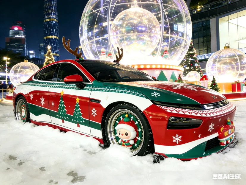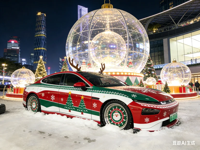 在众多外国节日里,圣诞节是我唯一偏爱的那一个。当广州天环广场的圣诞玻璃球亮起暖光,当羊城的夜色裹着圣诞的浪漫,我索性把这份喜爱揉进了爱车的涂装里——红与绿的圣诞纹路爬满车身,车顶的麋鹿角俏皮扬起,轮毂的圣诞图案和地面的积雪相映成趣。