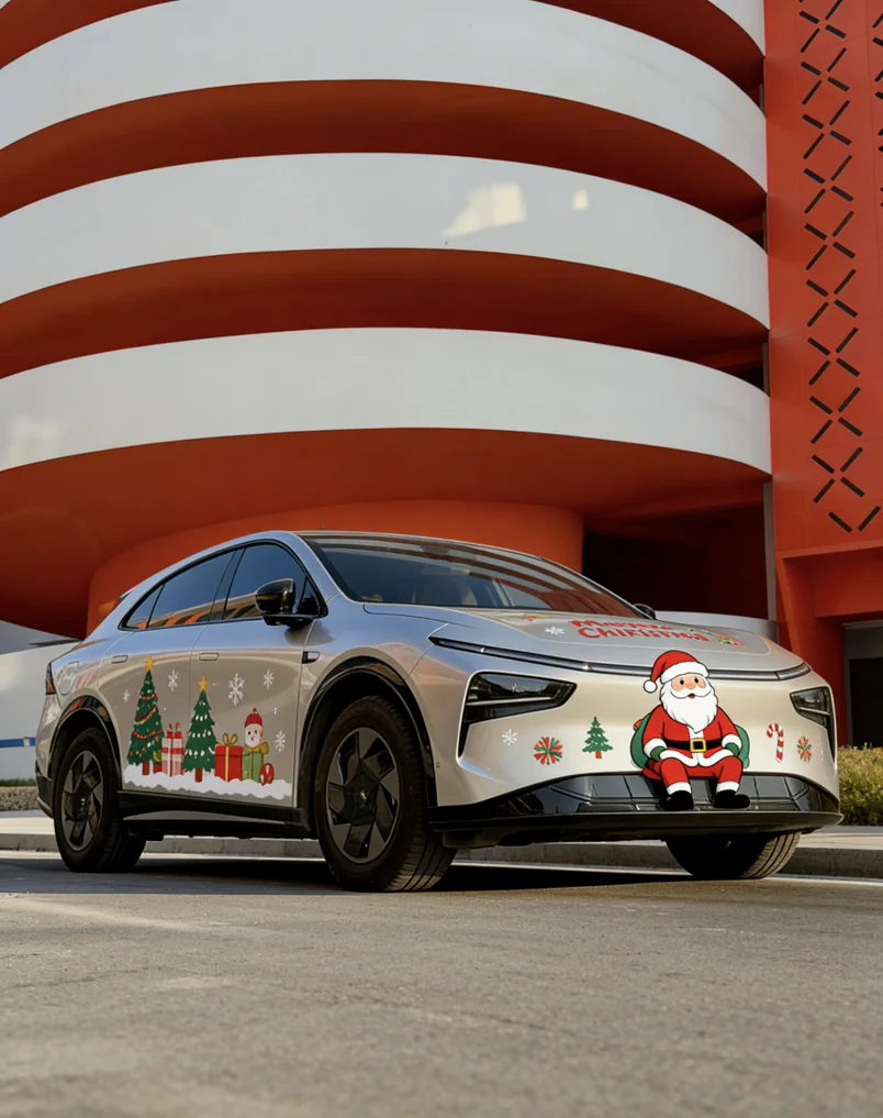 叮!圣诞魔法已加载,小鹏G7变身移动圣诞礼盒🎄 流光车身缀满星灯,暖红与松绿渐变氛围灯萦绕座舱,Nappa真皮座椅加热开启,瞬间包裹冬日暖意。