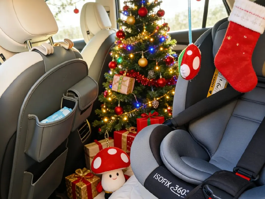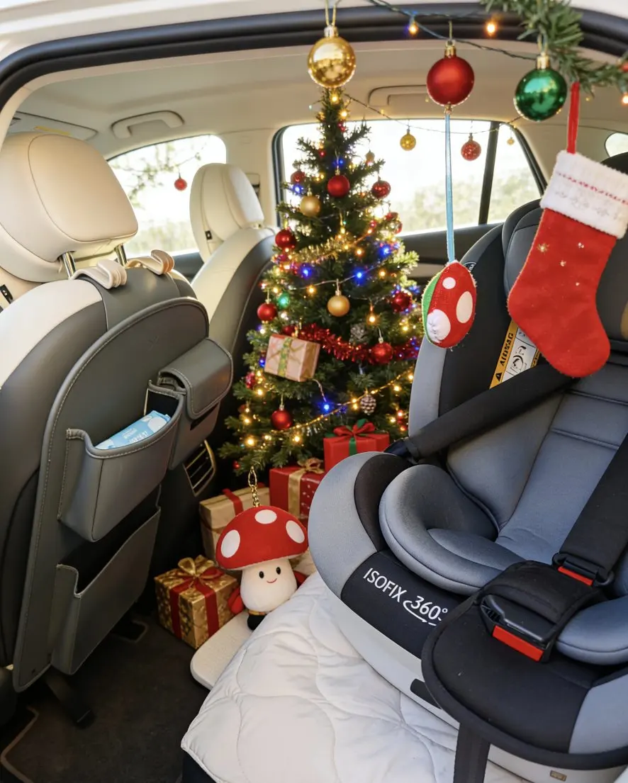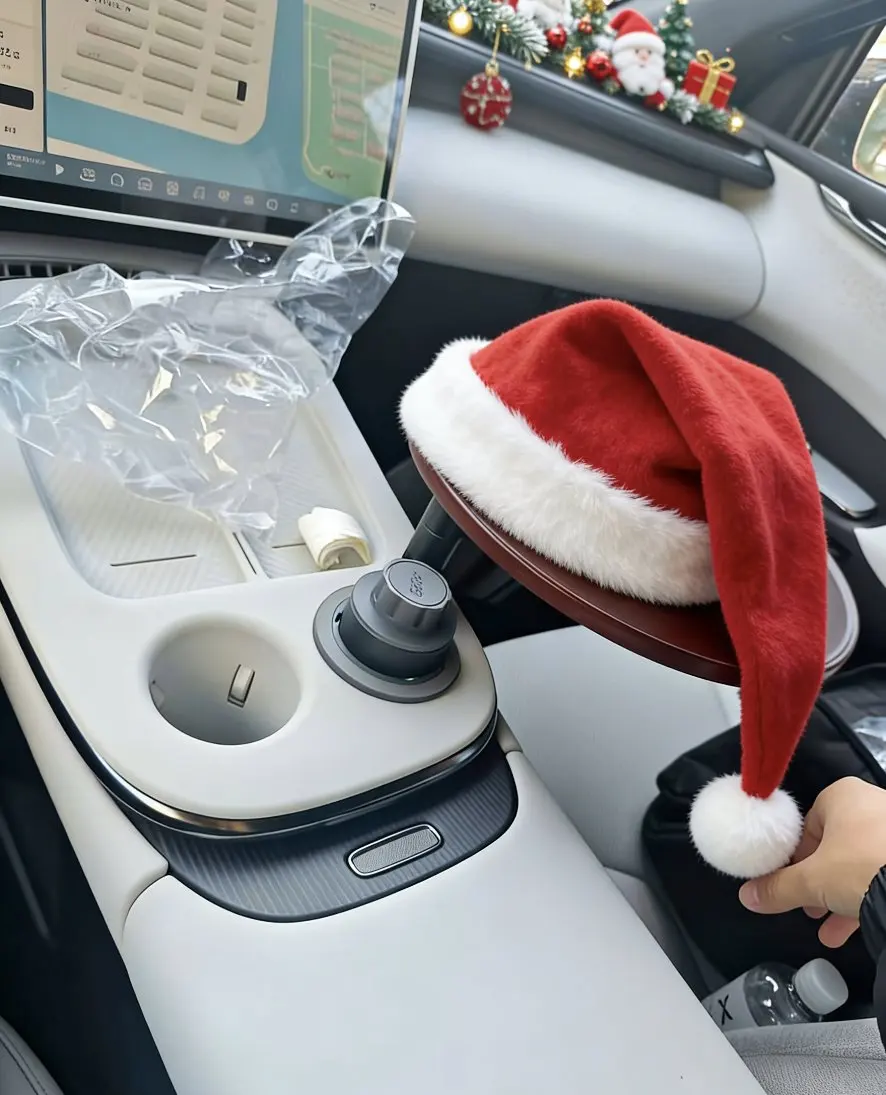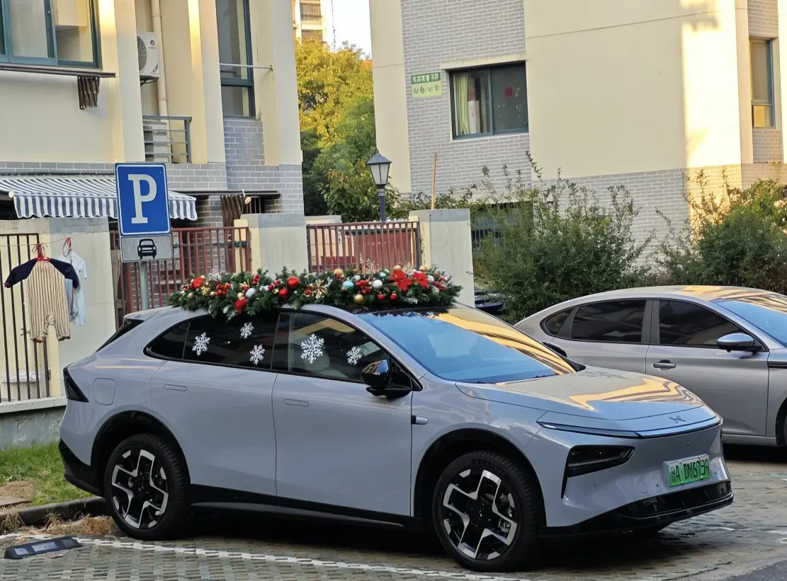 #我的圣诞魔力座驾# #圣诞怎么能让爱车素颜过节!给我的小鹏G7做了全套圣诞改造:车窗贴了雪花贴纸,轮毂盖粘了小雪花,车内杯架塞了圣诞帽,甚至给中控屏换了圣诞主题壁纸~红配绿的圣诞配色和小鹏的内饰搭在一起意外好看,拍了3组车图,每一张都氛围感拉满!这个圣诞,让爱车和我一起当街上最靓的仔~