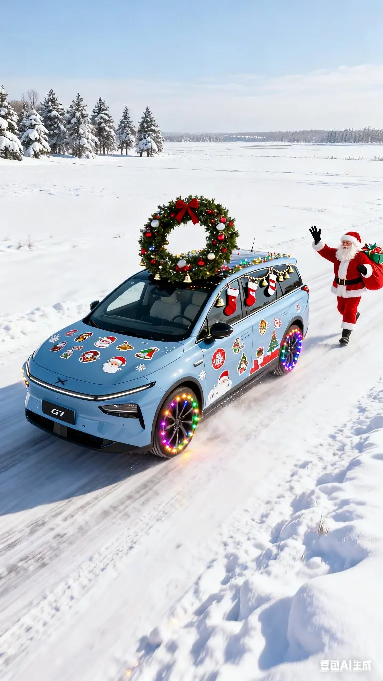 圣诞节快到了,小鹏g7穿上漂亮的圣诞装饰。满满的都是喜气。给冬日的寒冷添加了一份暖意。如果圣诞老人偶遇小鹏g7会是怎样的一幅场景呢?