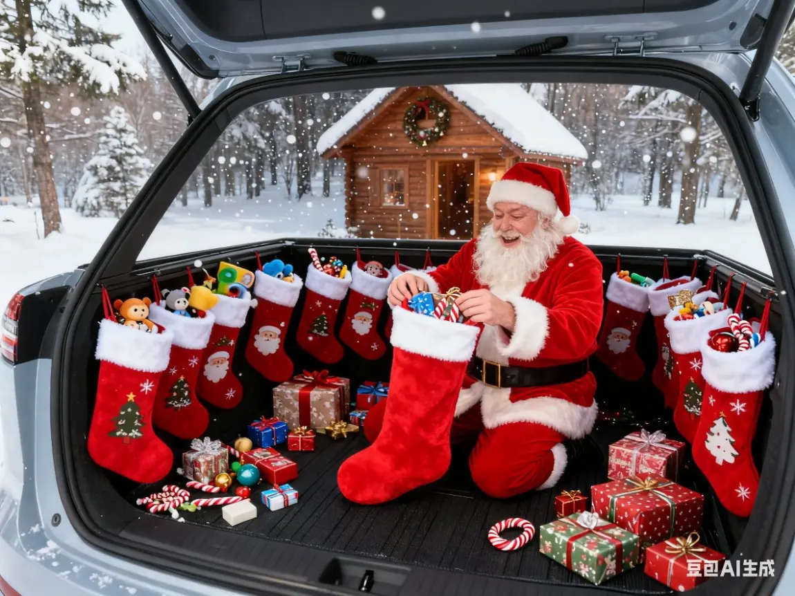 小鹏的后备箱超大超能装。所有礼物放在后备箱内也能放得下。