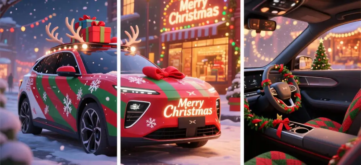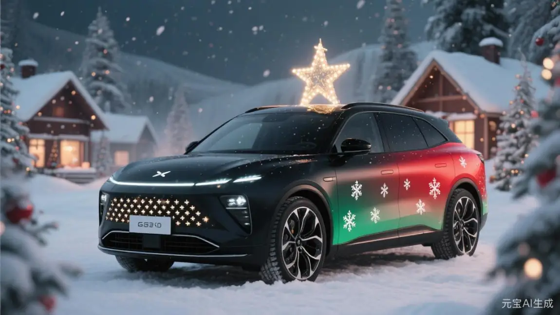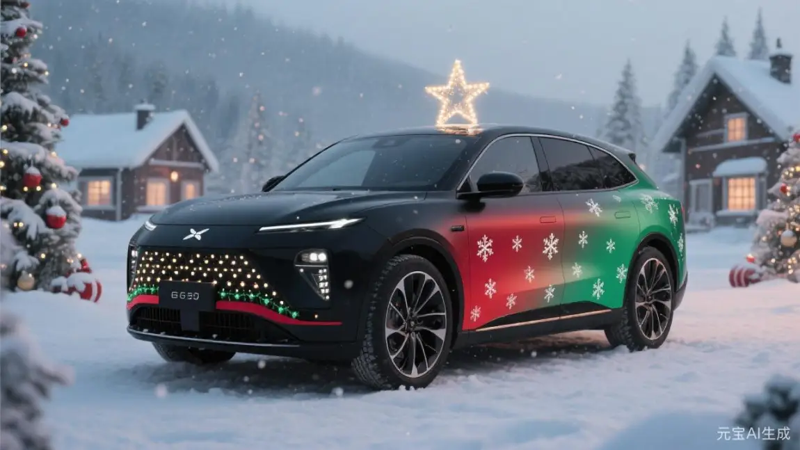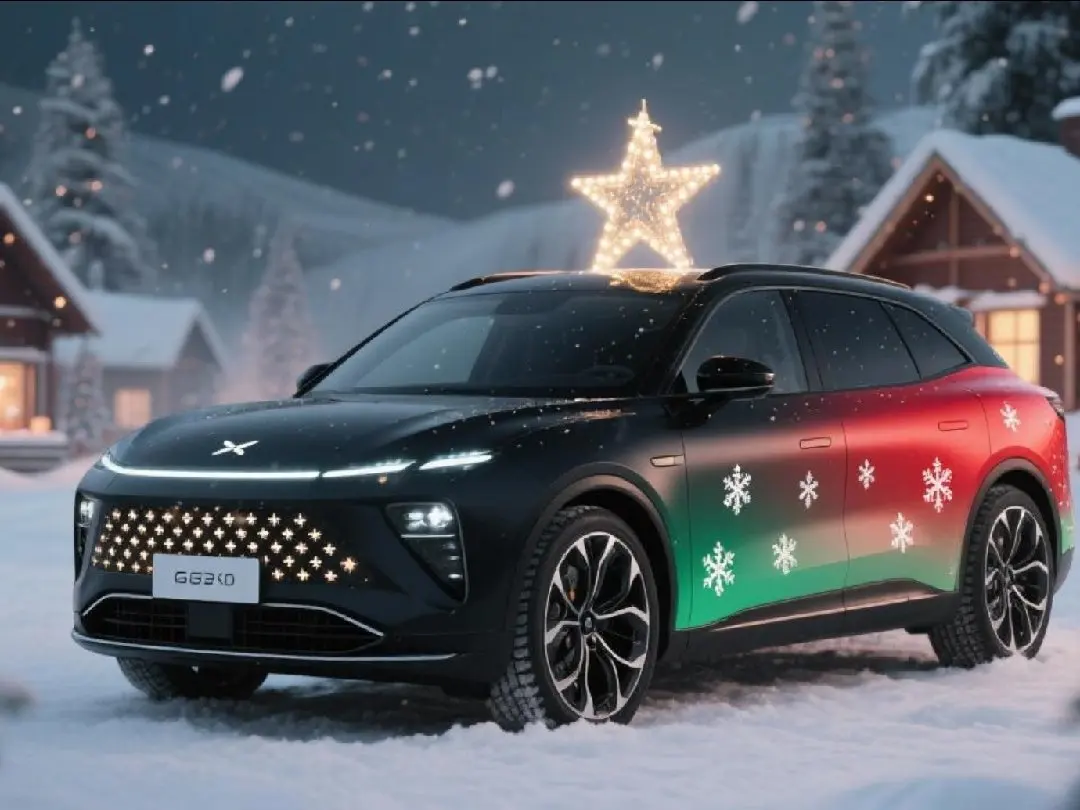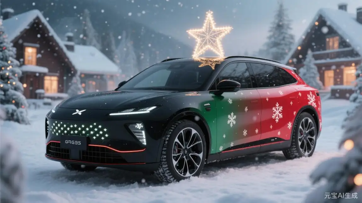 #我的圣诞魔力座驾# 当哑光黑车身披上红绿渐变绸带,这台G9便成了我最得意的圣诞作品!前脸格栅的雪花灯像被冬夜凝结的星光,车顶的发光圣诞树驶过街道时洒下暖黄光晕。内饰的麋鹿刺绣方向盘套与墨绿绗缝座椅,让每次出行都像钻进圣诞老人的移动壁炉。谁说节日氛围只能静止在客厅?今年我的移动圣诞城堡,要载着姜饼香气和礼物盒,驶遍全城的星光灯火!🎄🚗 你最想搭车去哪个圣诞集市?